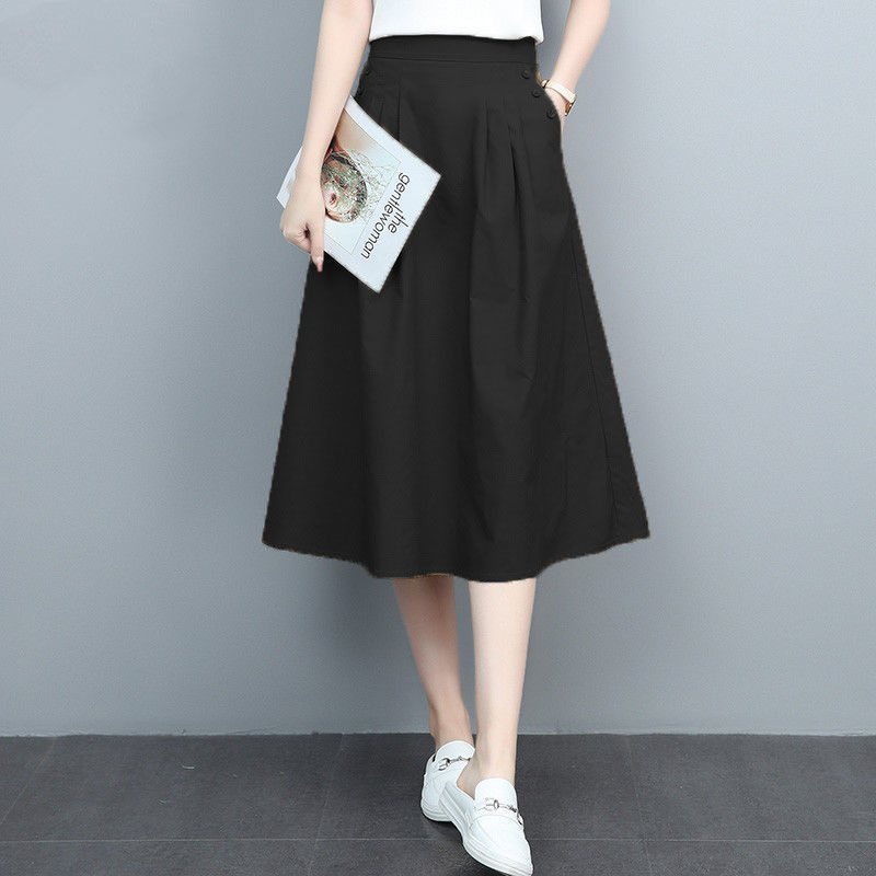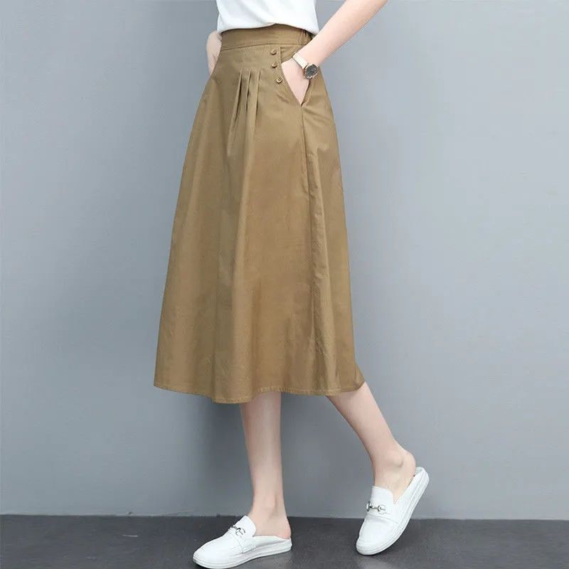纯棉半身裙女2025夏款文艺中长款松紧腰高腰显瘦百搭宽松A字裙