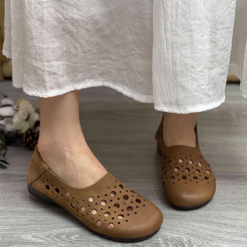 妈妈鞋凉鞋女夏季单鞋真皮软底老年舒适中年平底防滑老人洞洞皮鞋