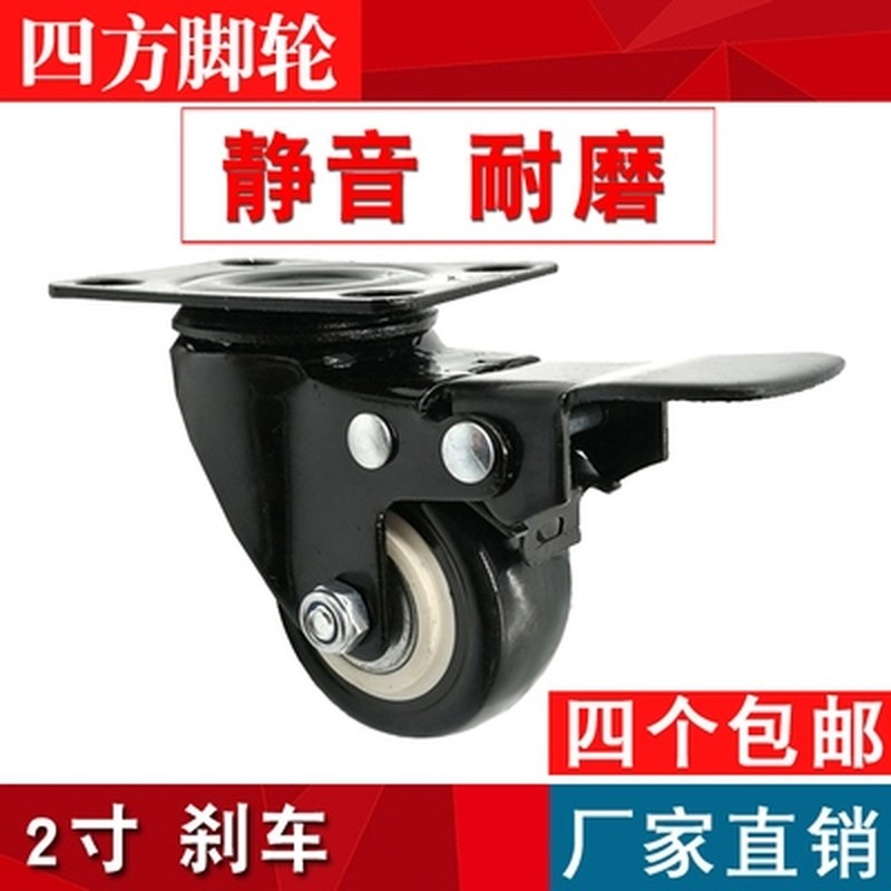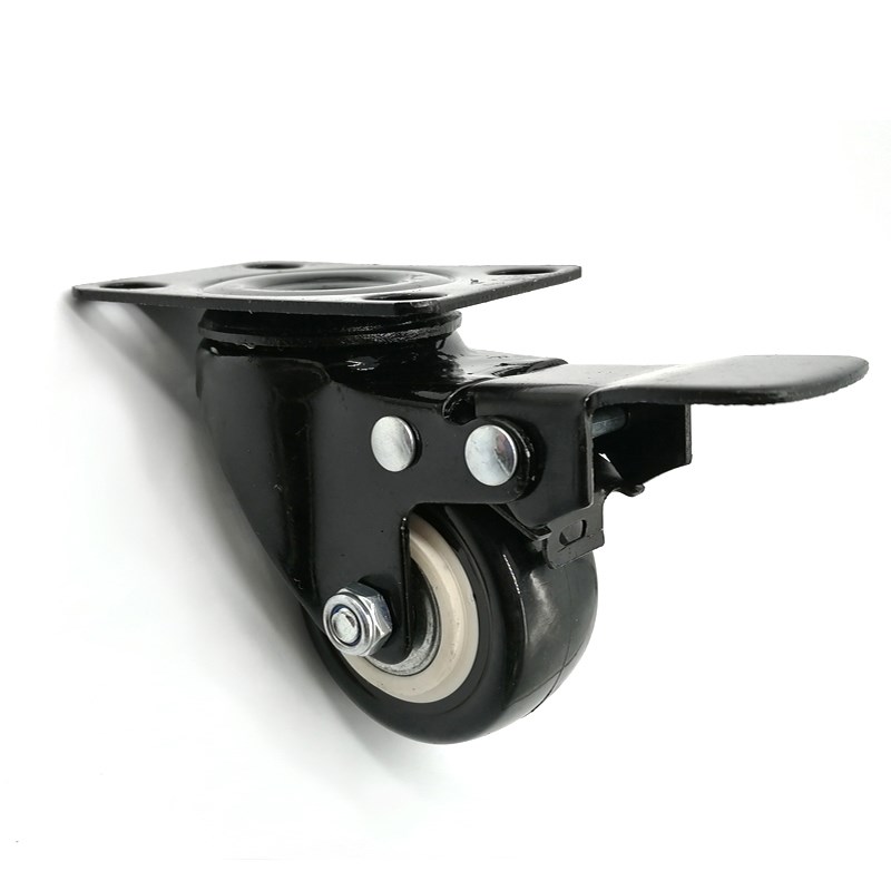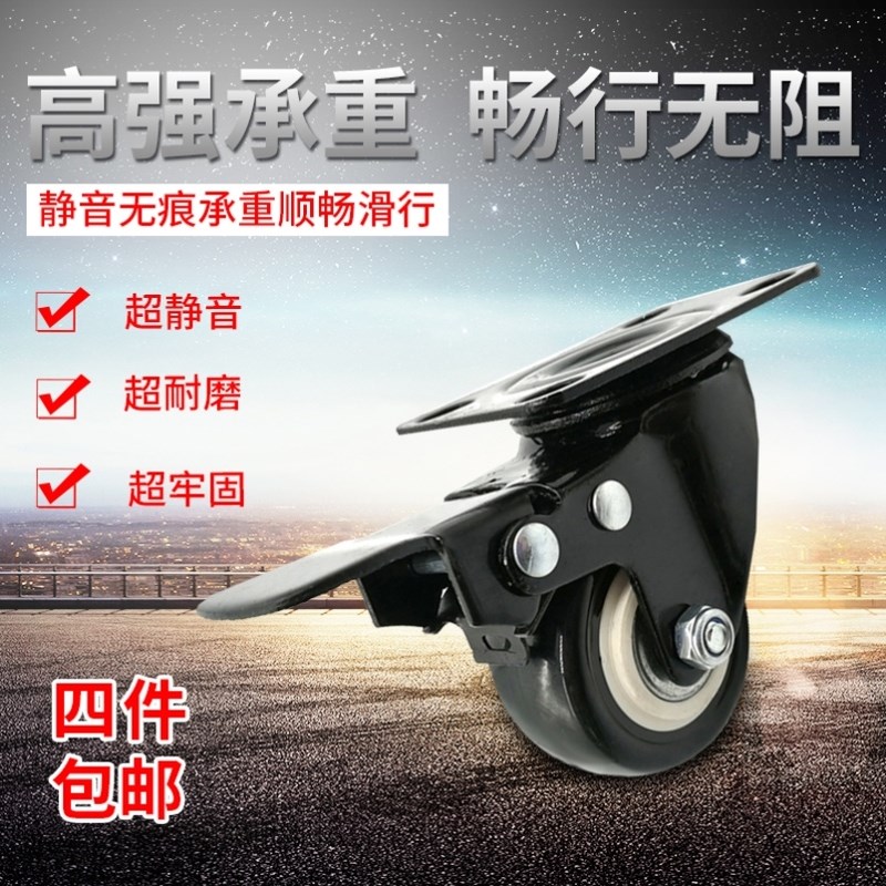 帐篷用脚轮黑色带刹车轮子双轴承PU聚氨酯静音金钻轱辘万向轮