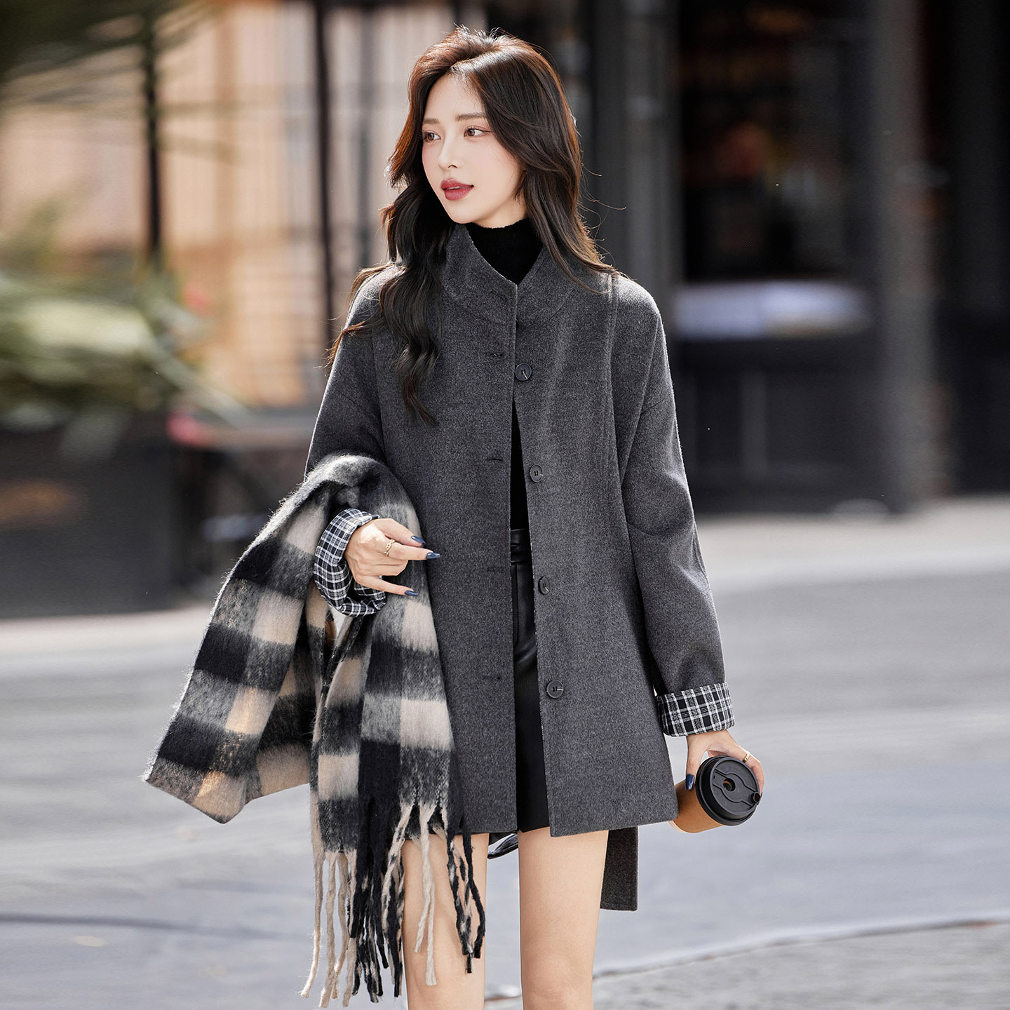 毛呢外套女中长款2025新款秋冬显瘦小个子韩系时尚洋气呢子大衣