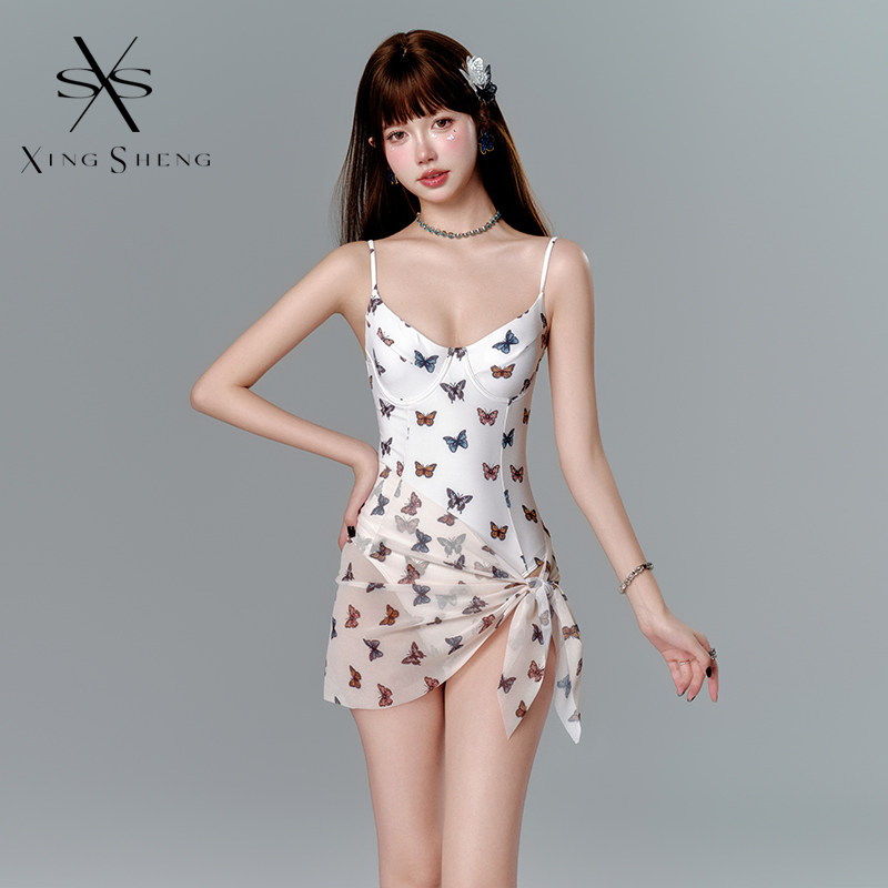 2025新款纯欲辣妹性感高级感蝴蝶印花小胸遮肉显白度假连体泳衣女