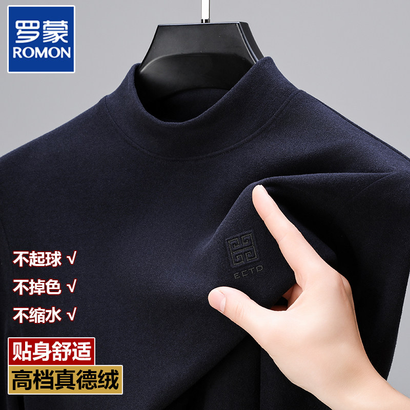 罗蒙双面德绒长袖t恤男士秋冬季内搭保暖上衣半高领打底衫卫衣潮