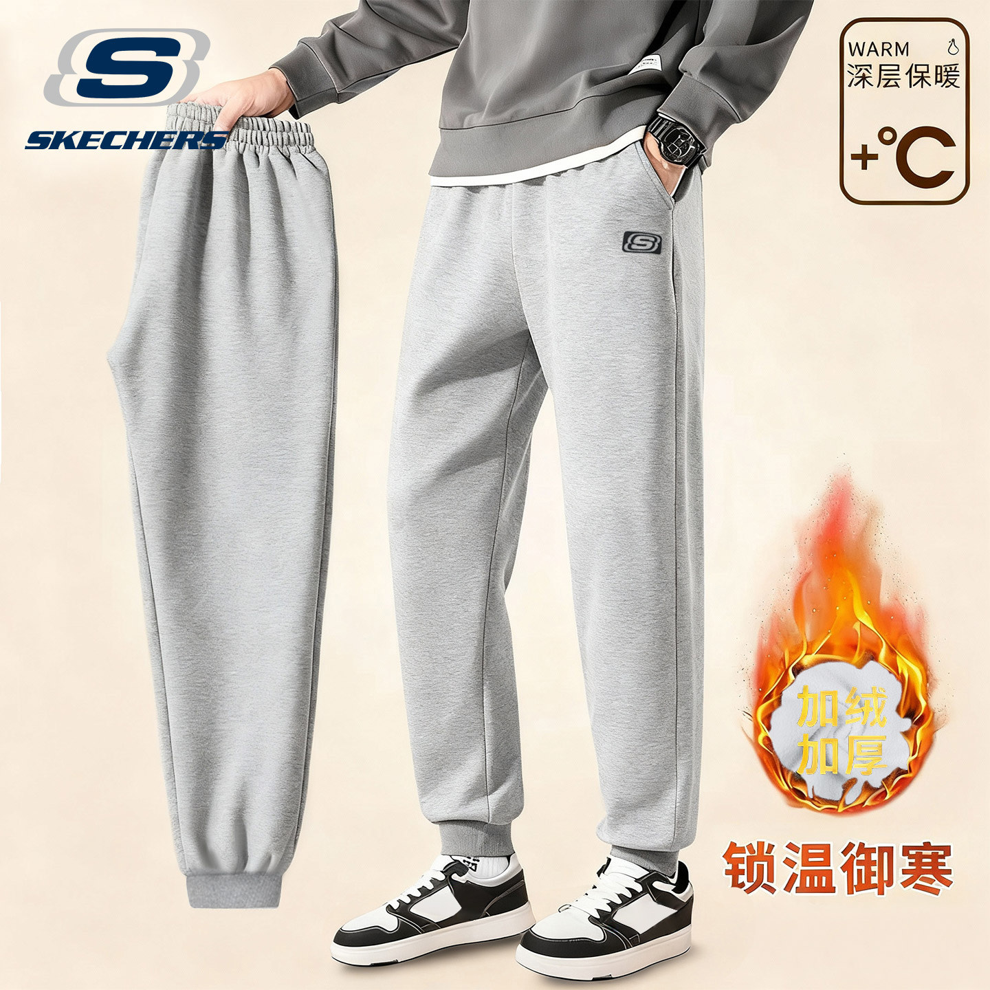 斯凯奇运动裤男冬季加绒百搭长裤