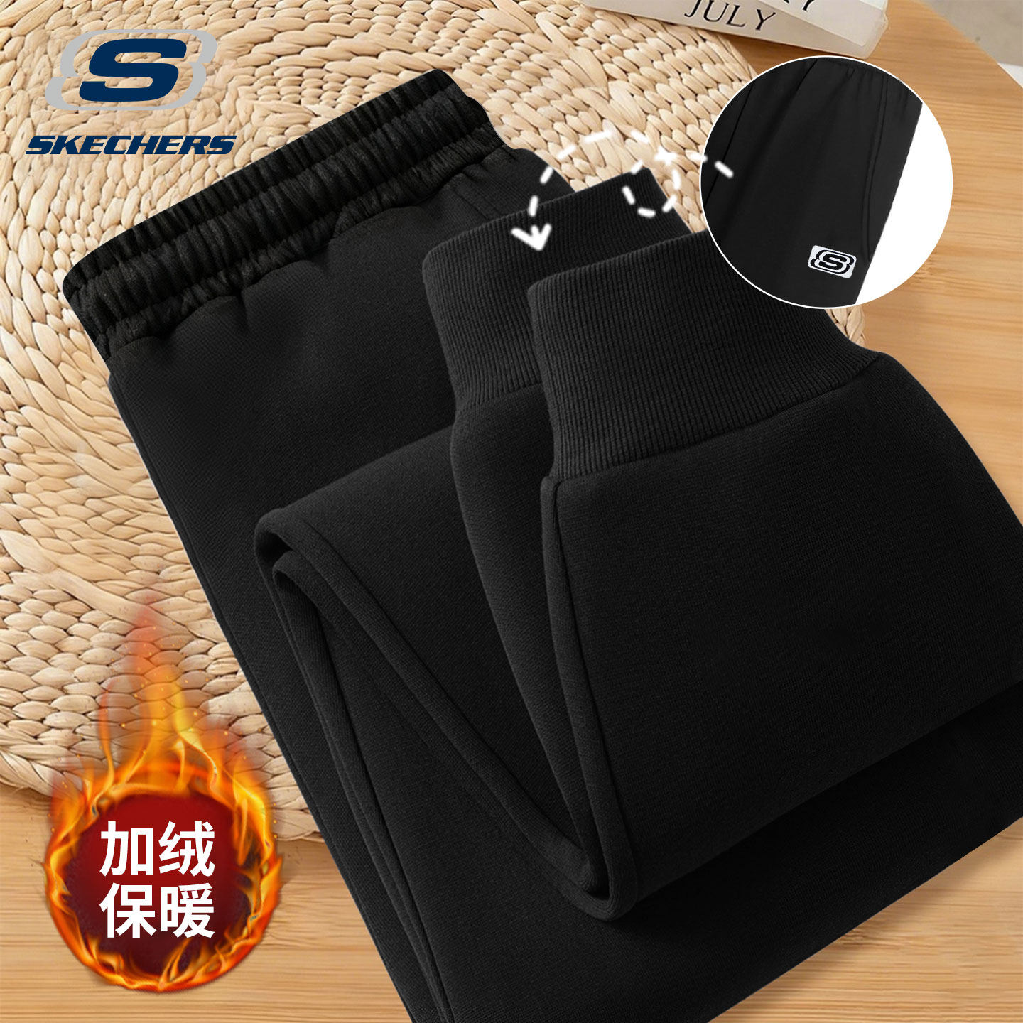 斯凯奇运动裤男2025冬季新款黑色加绒卫裤针织束脚裤男士百搭长裤