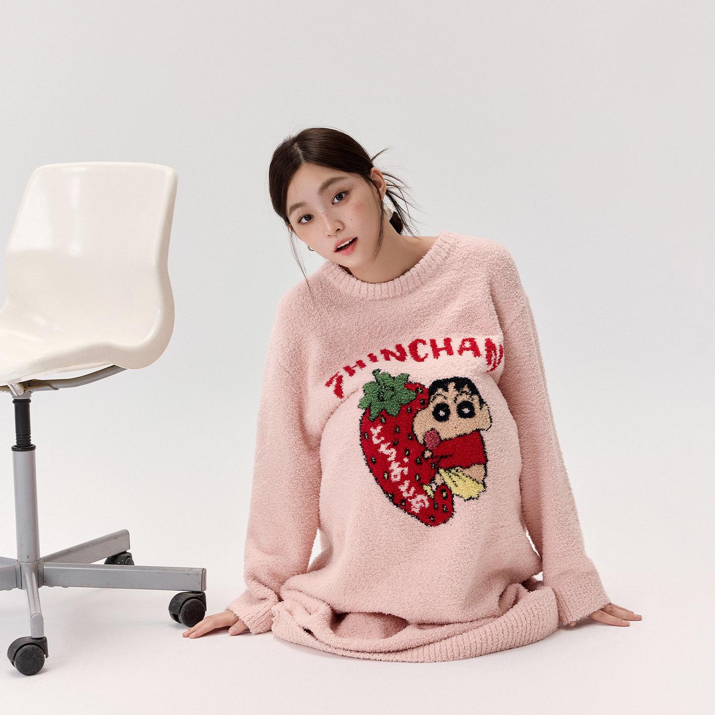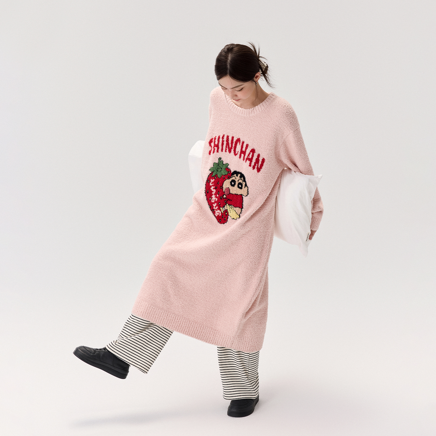 亲嘴猫【蜡笔小新】半边绒保暖睡裙可外穿睡袍女睡衣家居服秋冬季