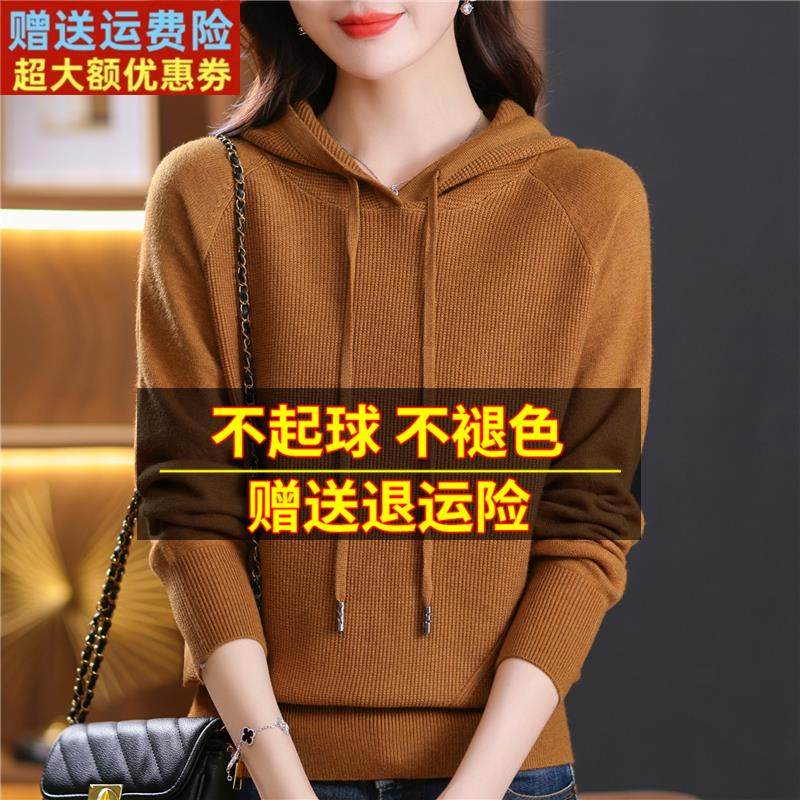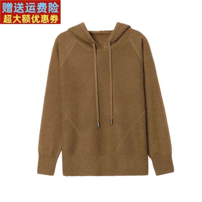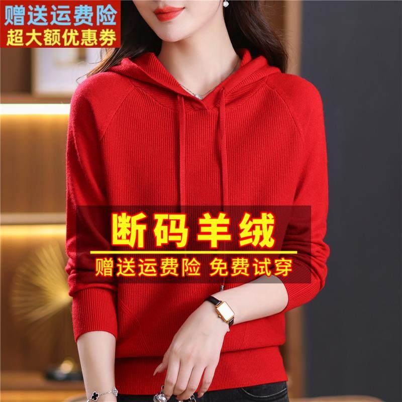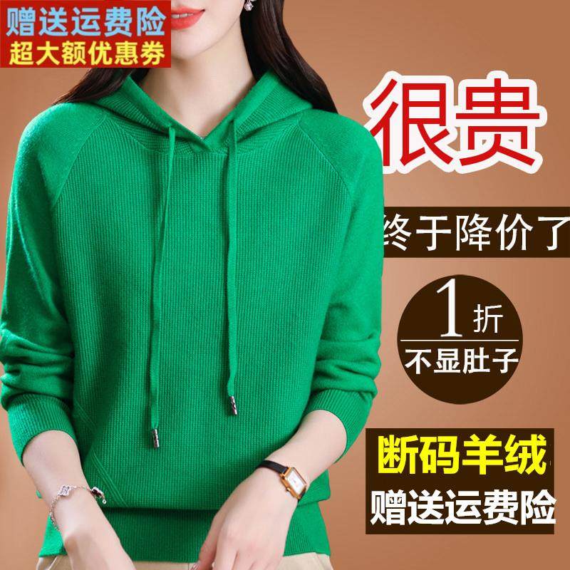 鄂尔多斯市羊绒衫女连帽针织衫2023新款妈妈套头卫衣羊毛打底毛衣