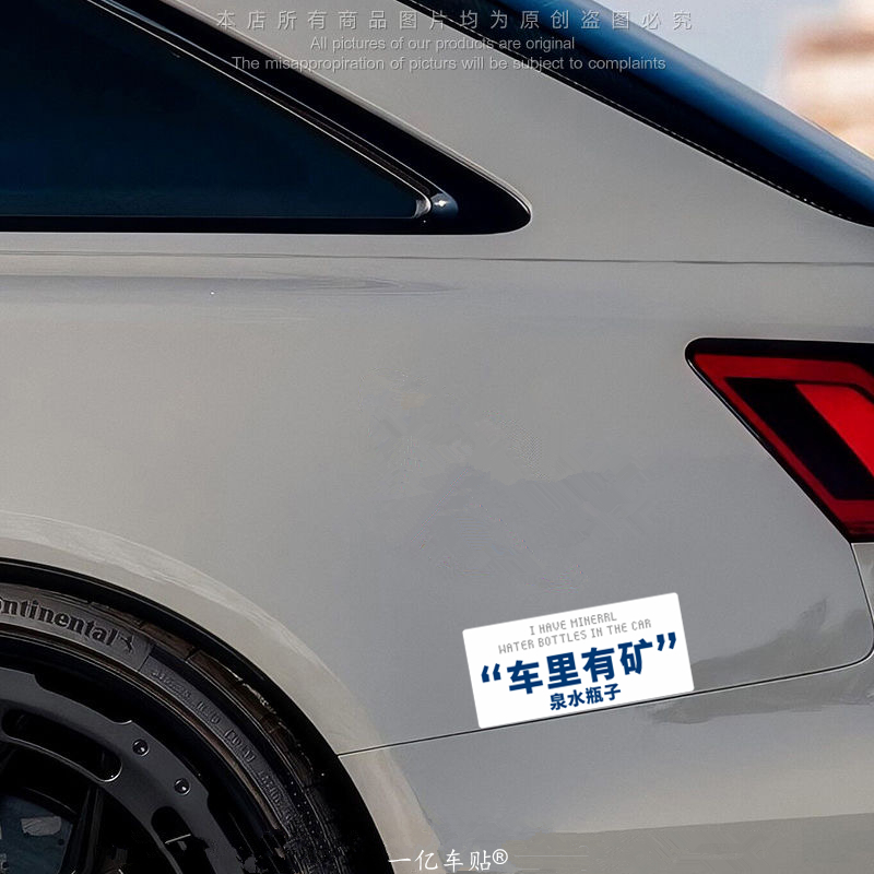 车里有矿 泉水瓶子内涵文字贴纸 个性搞笑车身玻璃窗装饰创意贴花