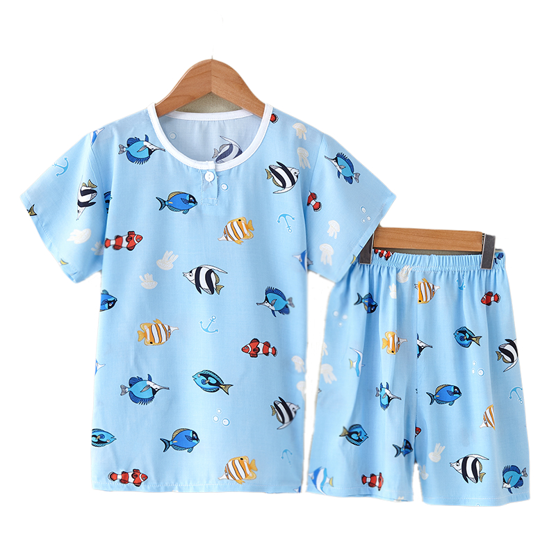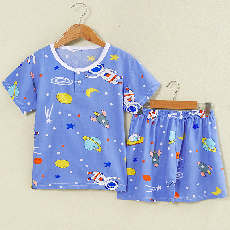 儿童棉绸纯棉睡衣套装夏季男童女童短袖短裤棉绸睡衣家居服空调服