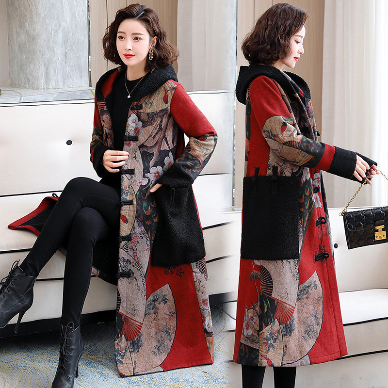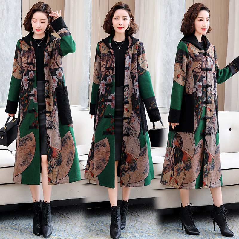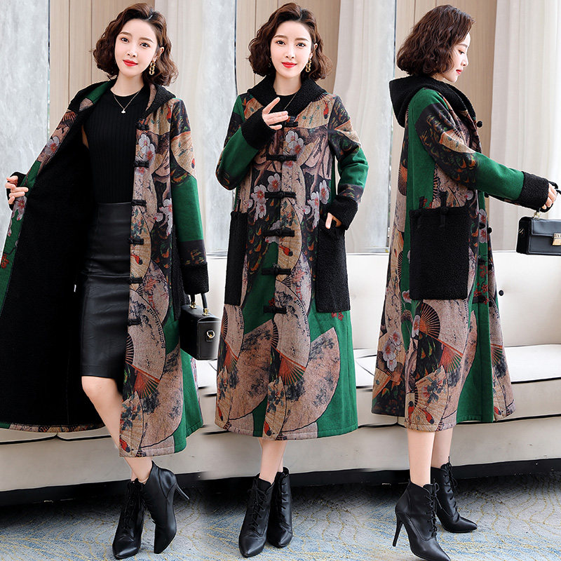 中国名族风妈妈加绒加厚大衣棉衣