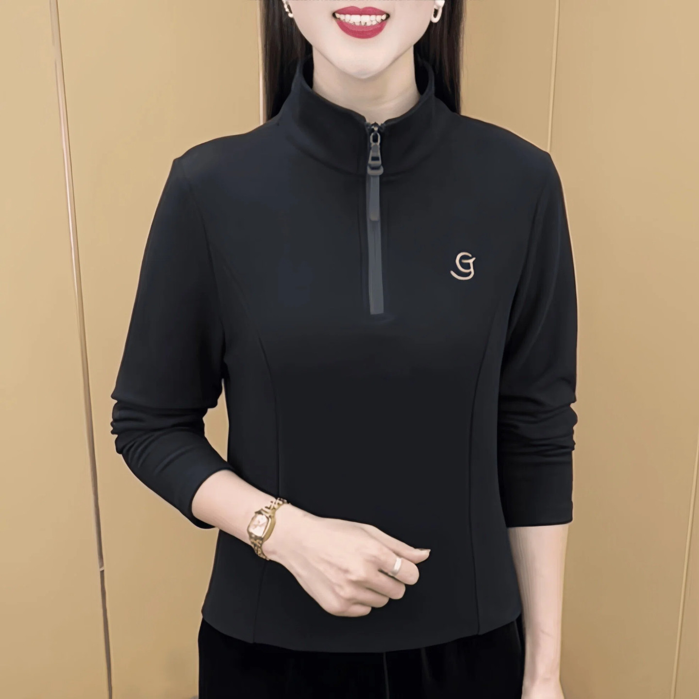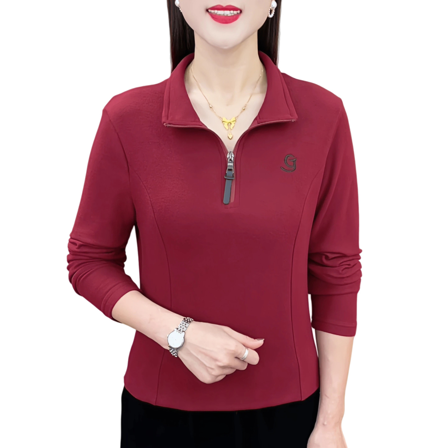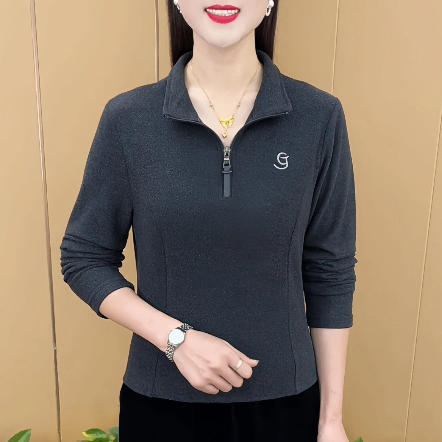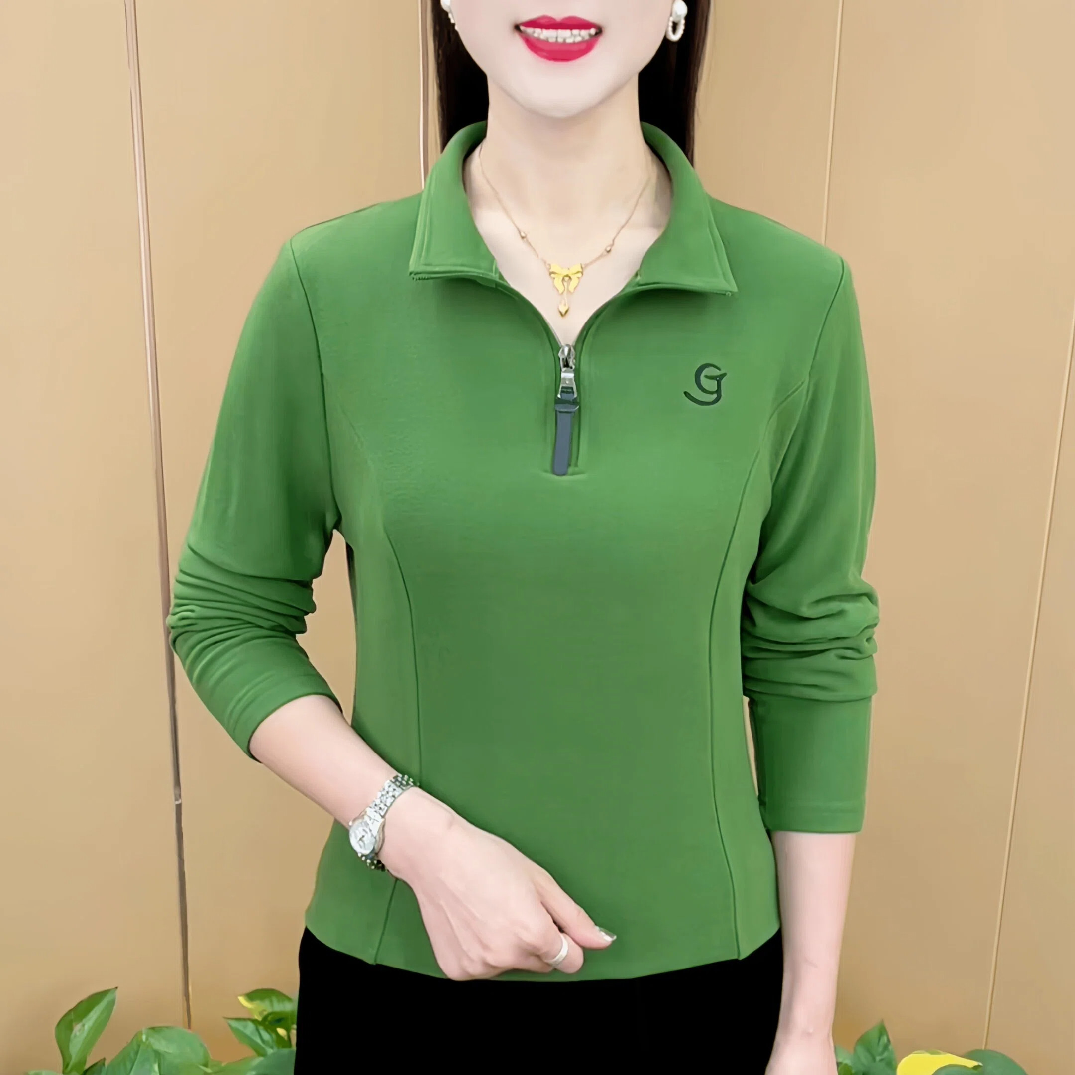 德绒大码长袖春秋新款洋气百搭翻领打底衫上衣妈妈休闲衬衣女T恤