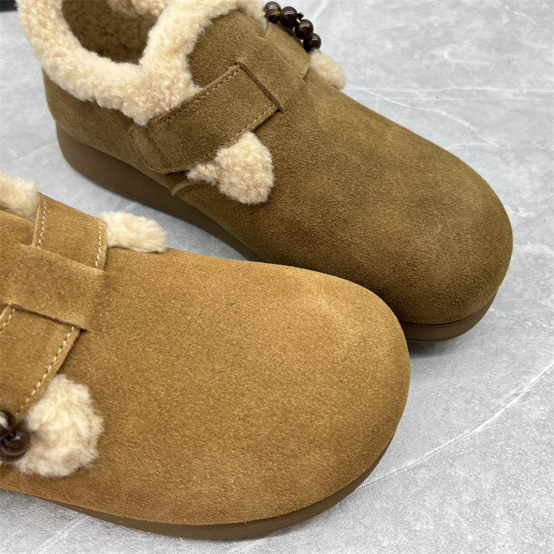 2025新款秋冬加绒保暖时尚百搭女棉鞋磨砂牛皮软底舒适勃肯女鞋