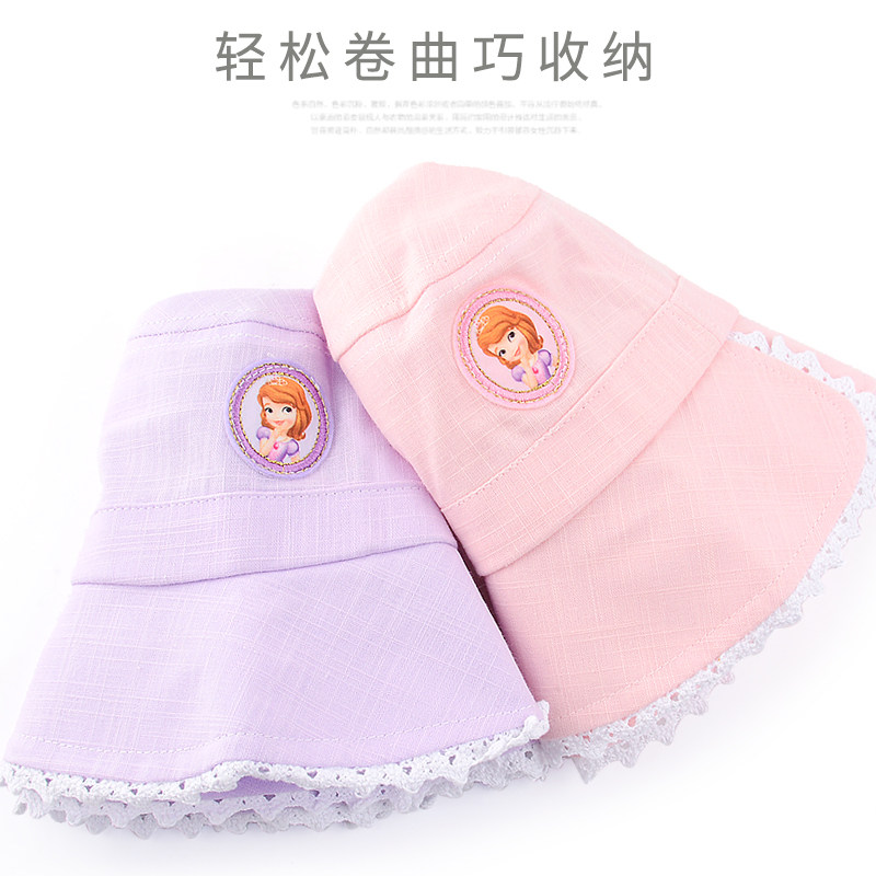 迪士尼儿童帽子夏季薄款太阳帽女童帽子宝宝遮阳帽公主卡通渔夫帽