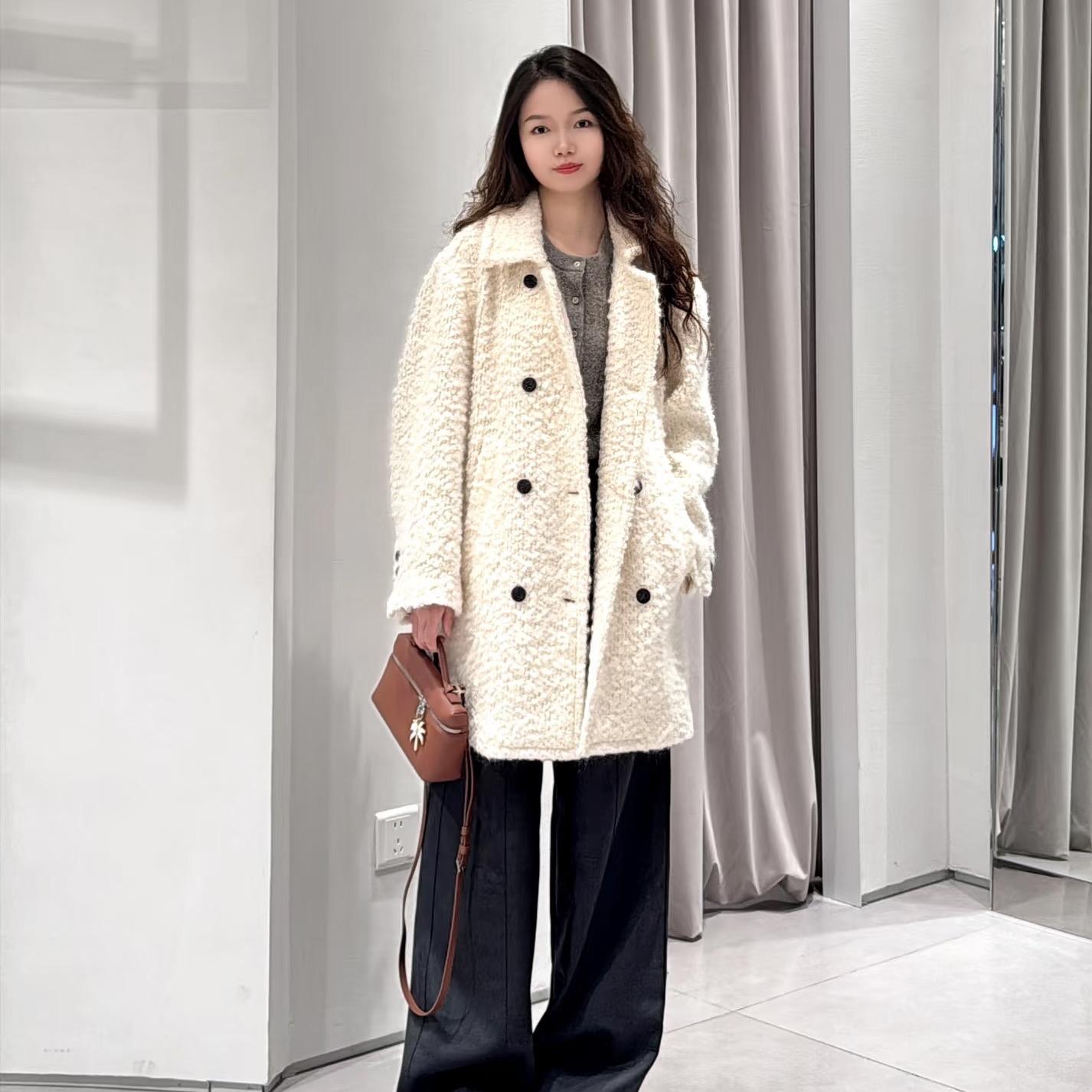 2I4G307吊牌4399大地素DAZZLE专柜正品2024冬女长大衣奶呼呼可爱
