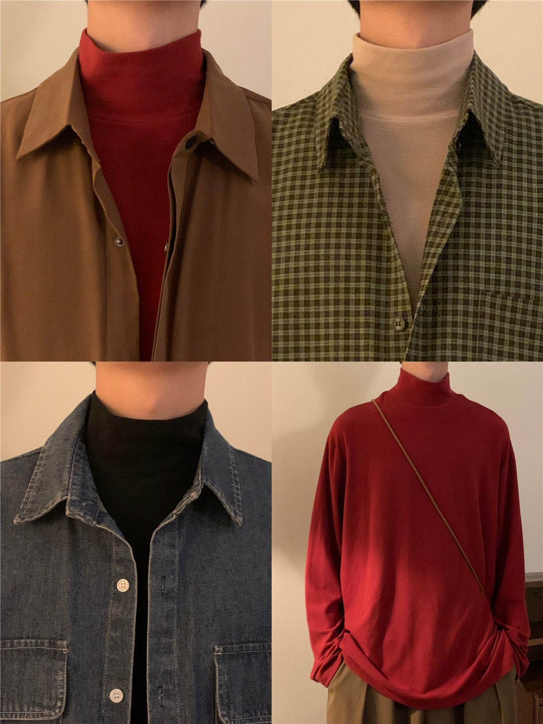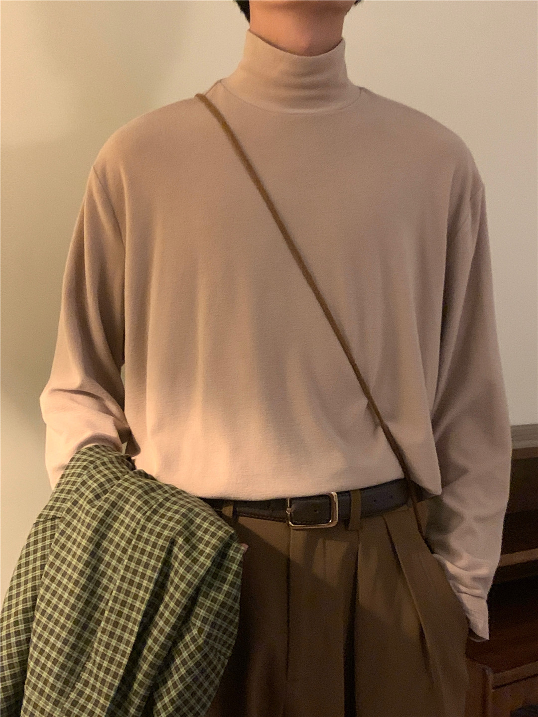 NAGAWL冬季日系复古内搭半高领打底衫男休闲百搭长袖T恤叠穿ins潮