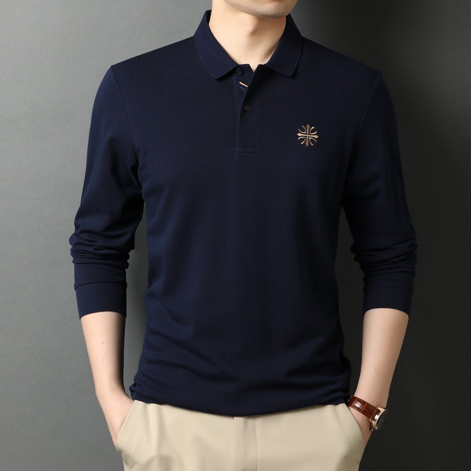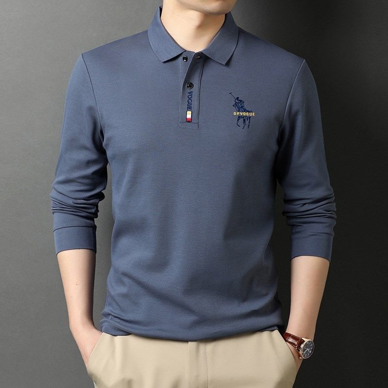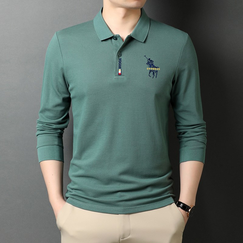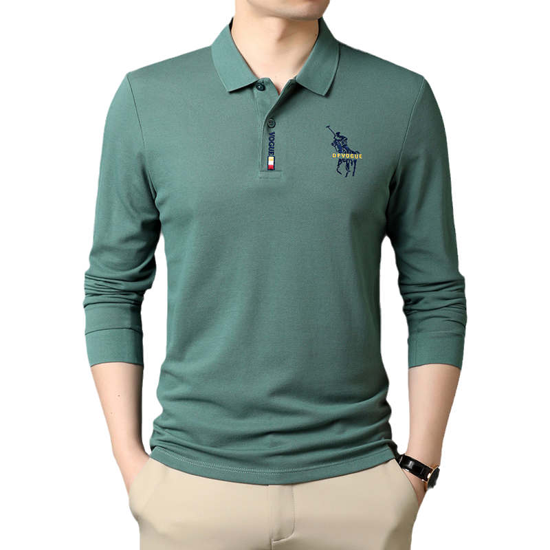 秋冬季男士100%纯棉保罗Polo衫高端简约小鹿刺绣外贸原单长袖T恤