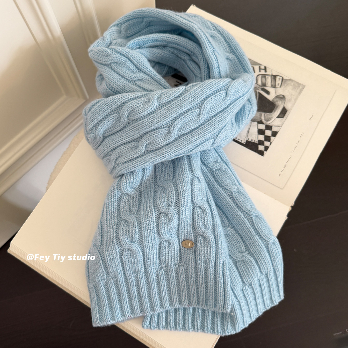 feytiy 含羊毛 经典麻花针织围巾男女情侣秋冬季保暖加厚百搭围脖