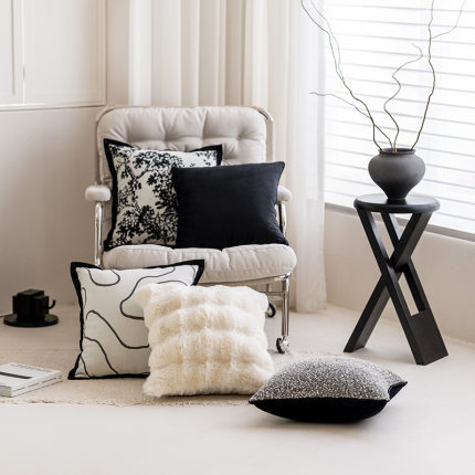 侘寂风法式黑白灰格子轻奢高档沙发抱枕靠垫样板房靠枕民宿色腰靠