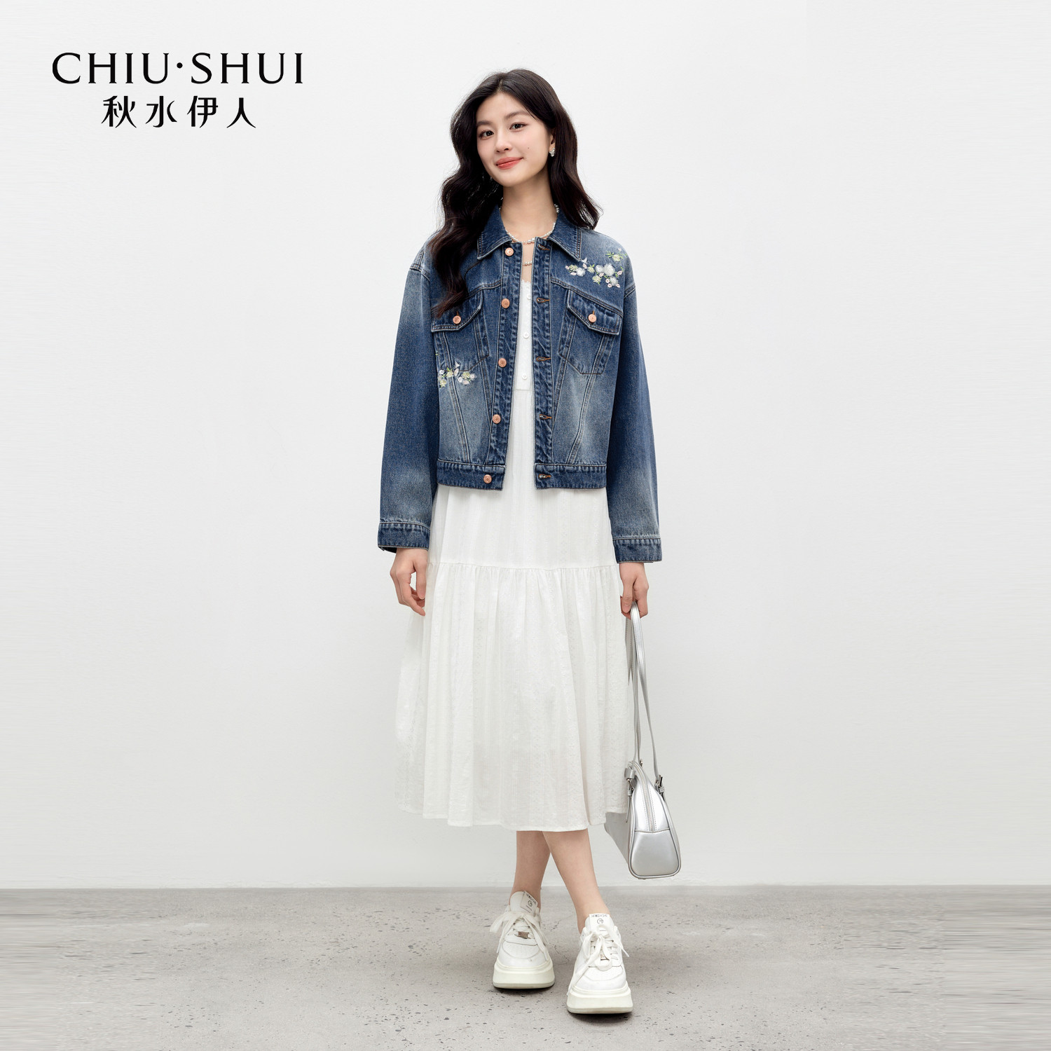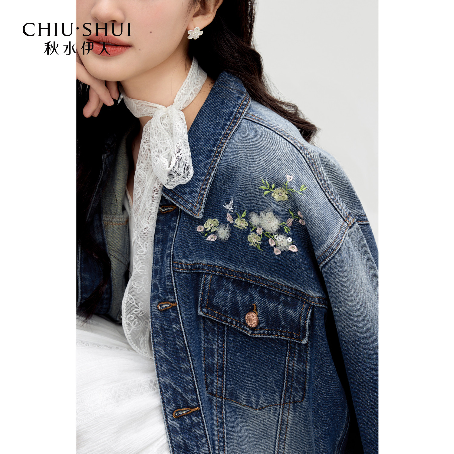 秋水伊人复古绣花牛仔外套女2026春季新款宽松设计感蓝色短款外套