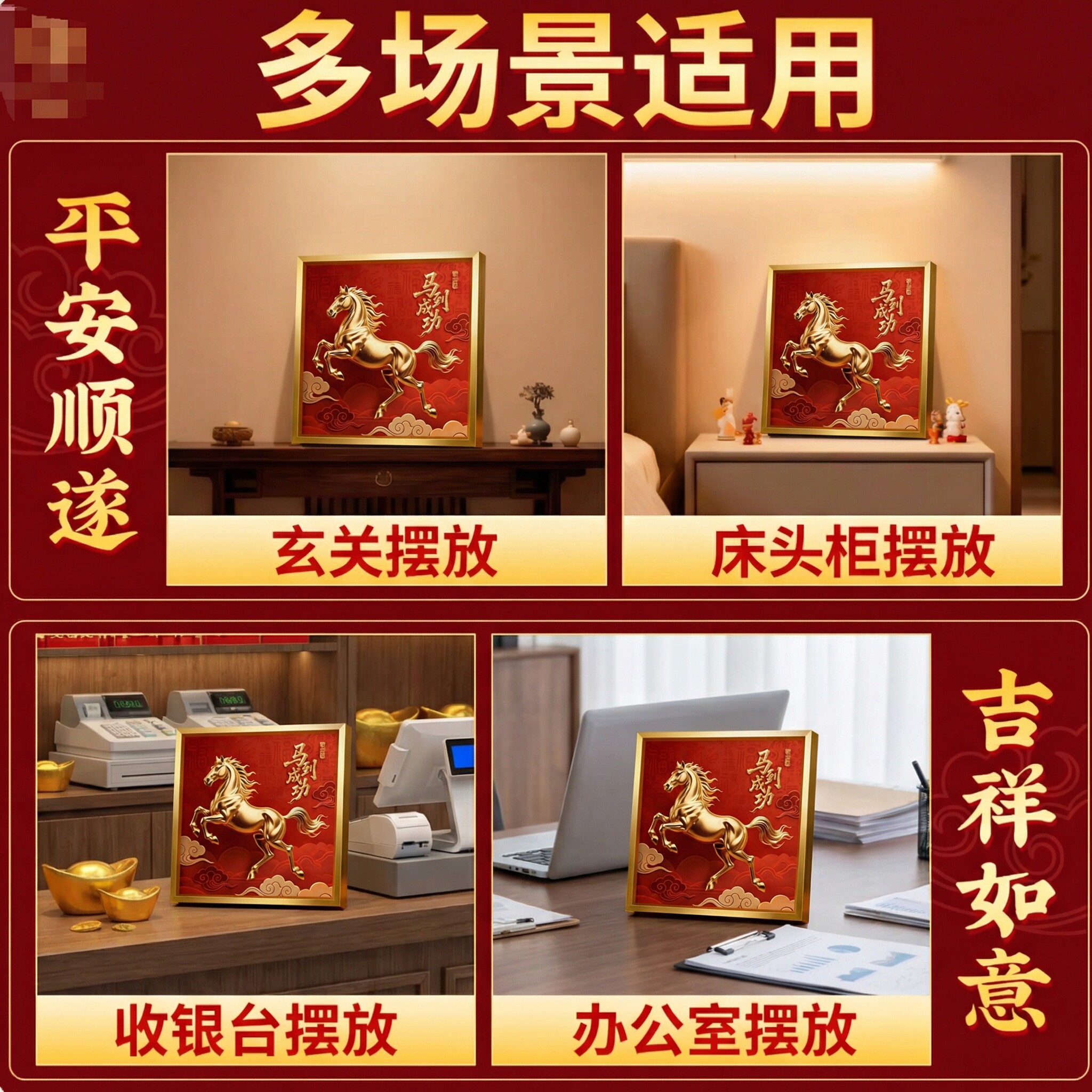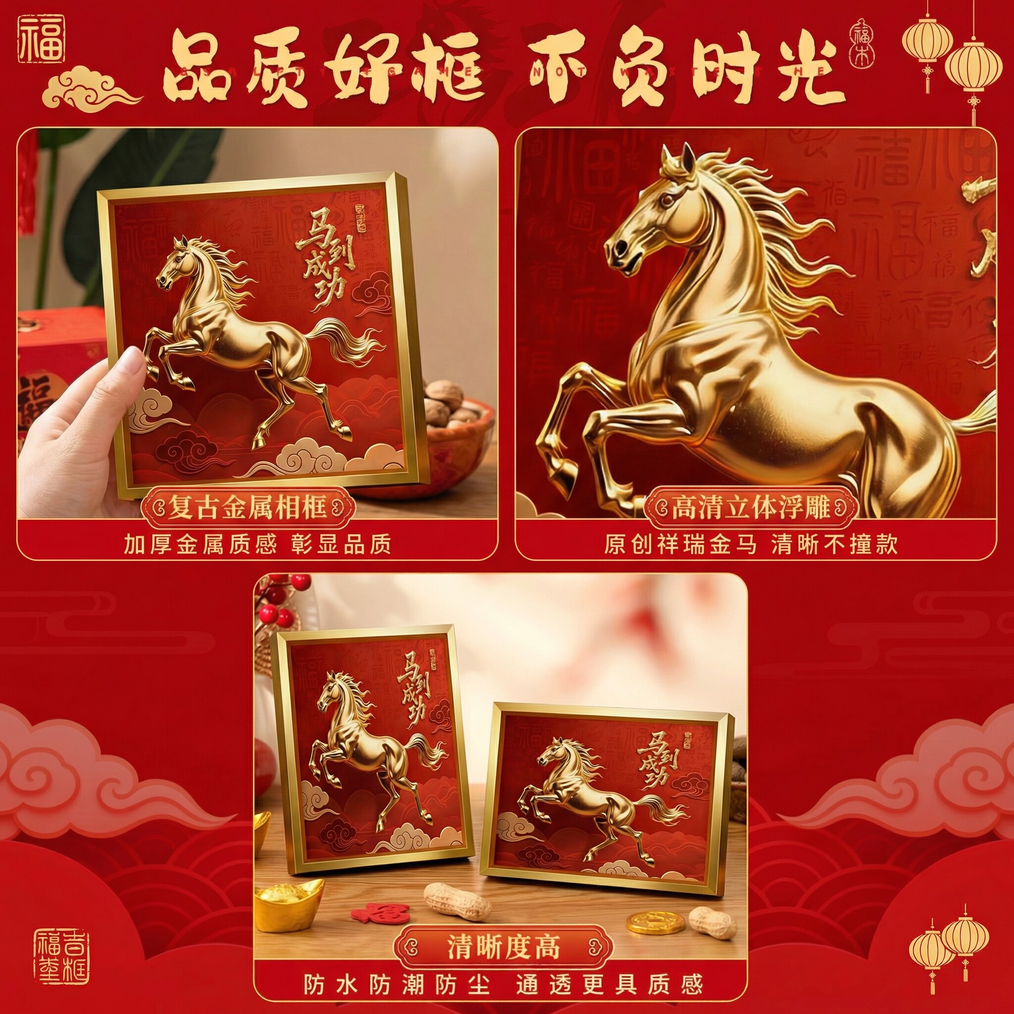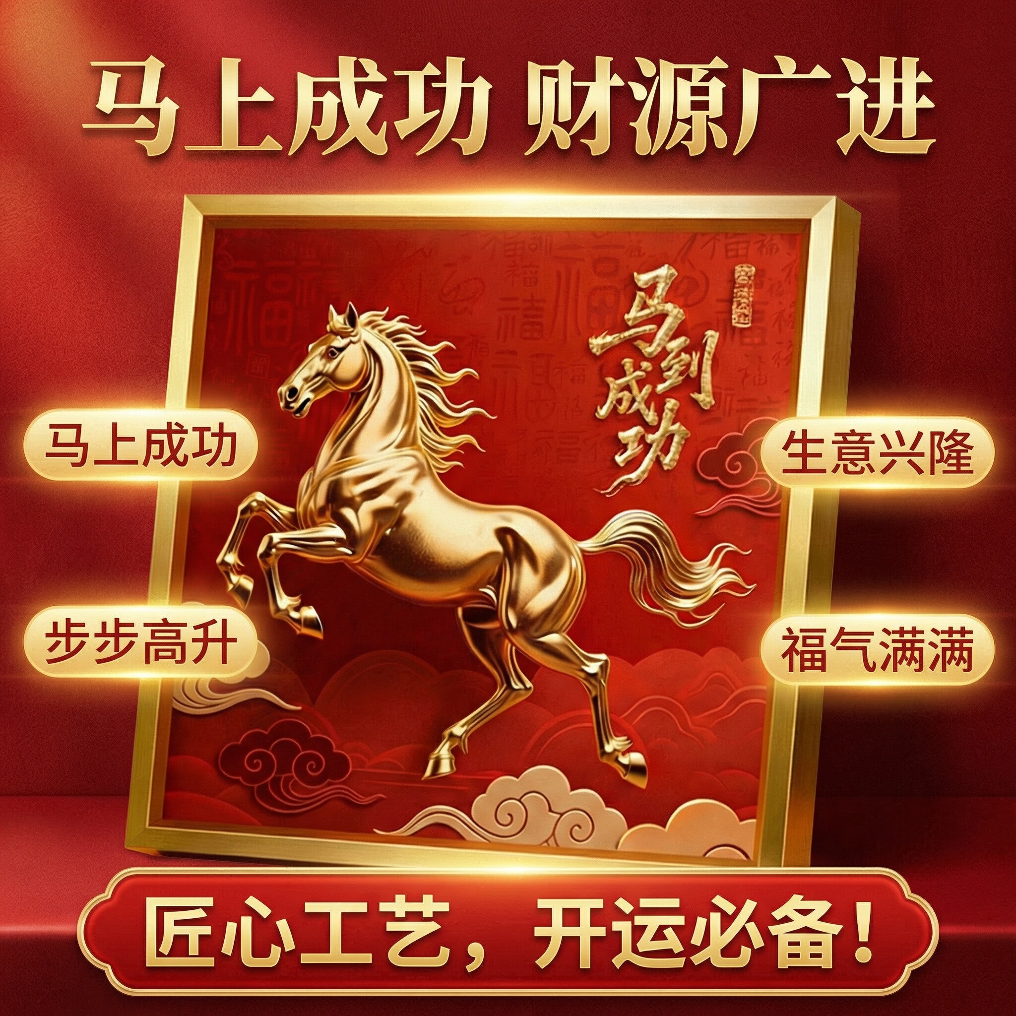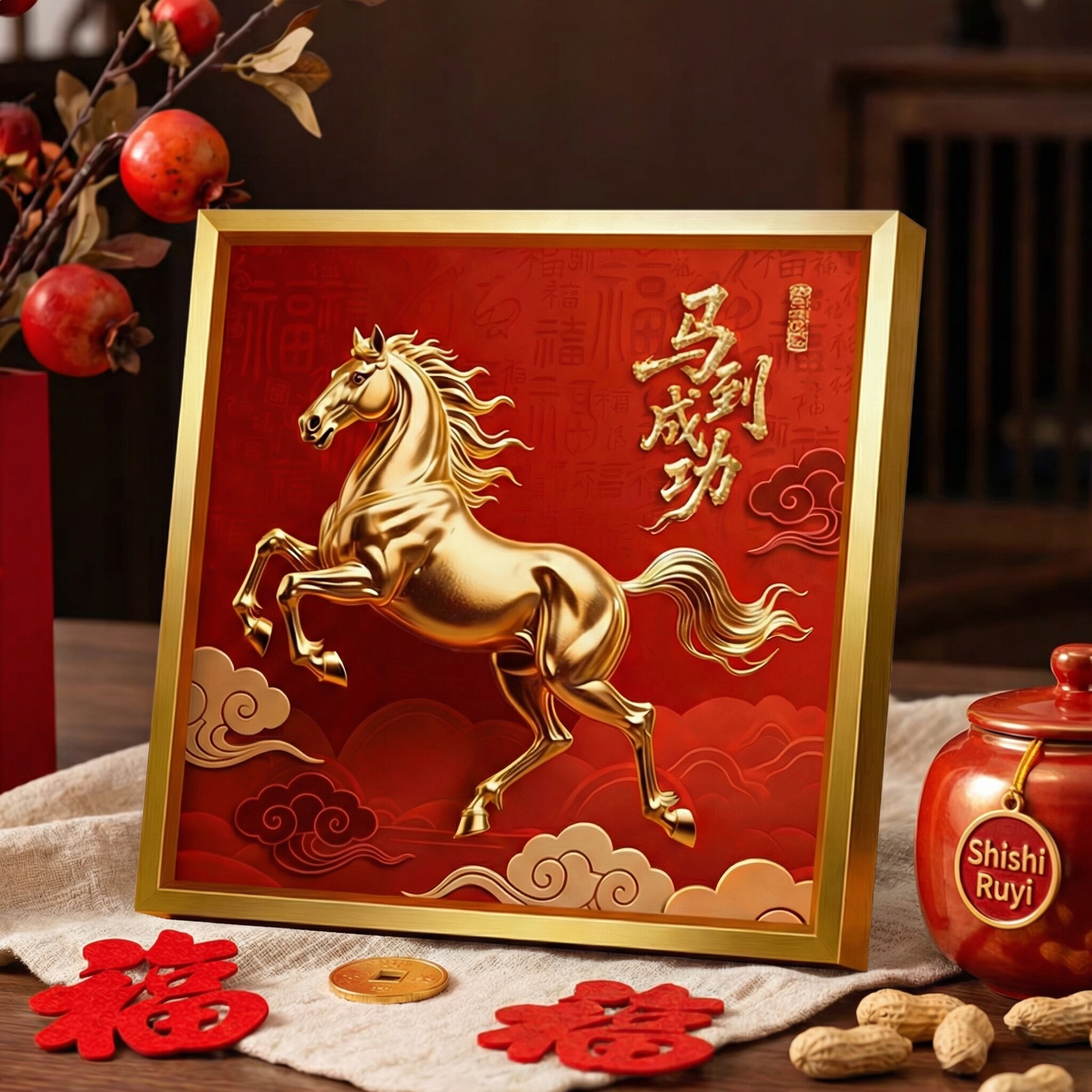 马到成功摆件高级感客厅玄关办公室挂画马年新年装饰桌面相框摆台