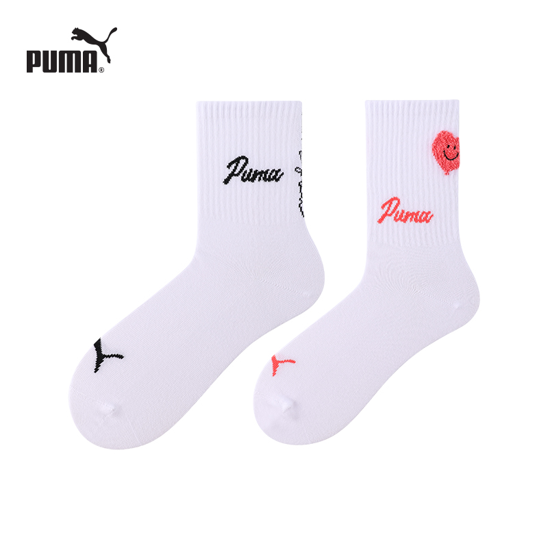 PUMA彪马袜子男女情侣爱心款时尚潮流百搭长筒棉袜2双装配鲨鱼裤