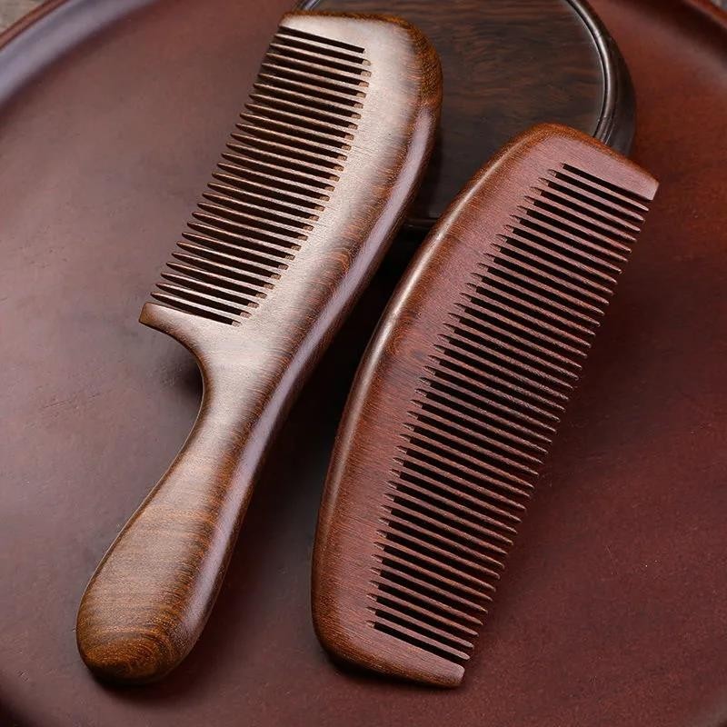 天然整木檀木梳子防静电按摩头皮直发女士长发长柄密齿家用木梳子