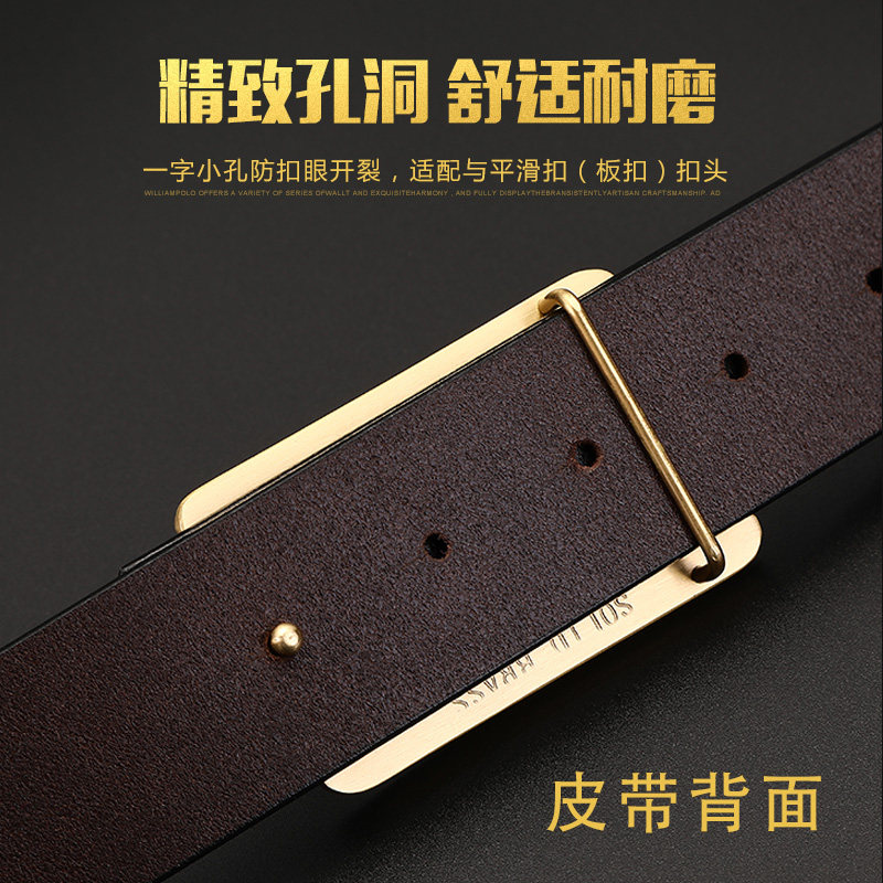 2025新款头层牛皮男士腰带平滑扣打孔眼裤带不含扣头针扣板扣真皮
