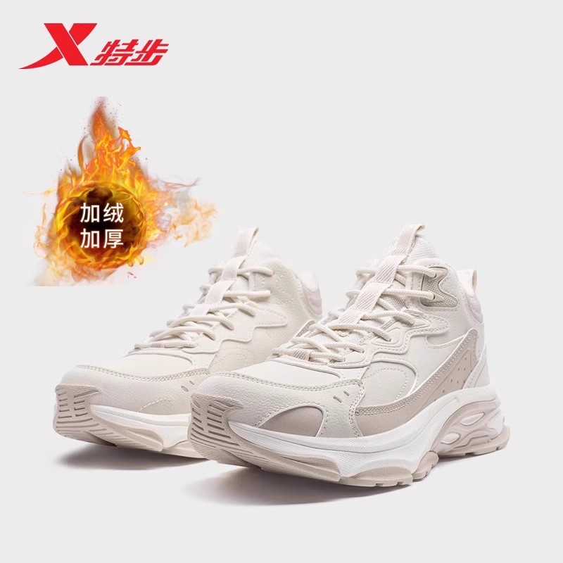 特步女鞋大棉鞋冬季新款正品加绒保暖高帮运动鞋休闲鞋二棉鞋
