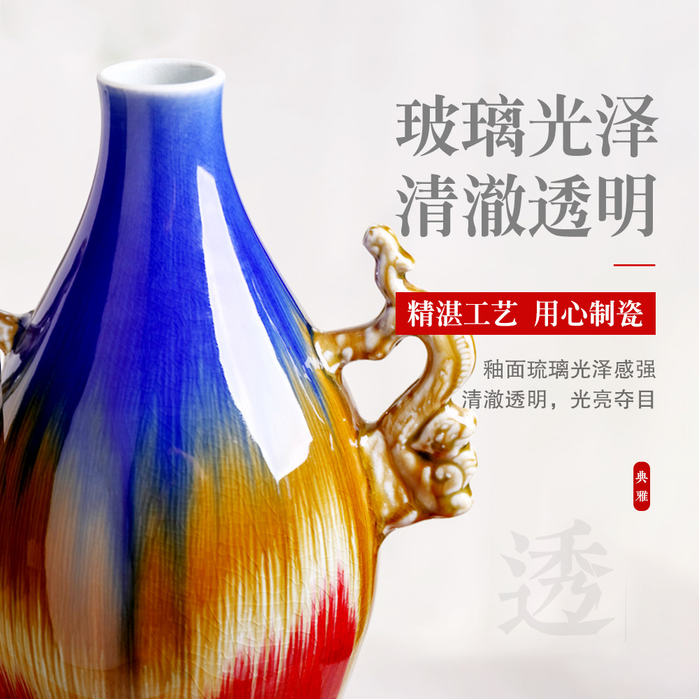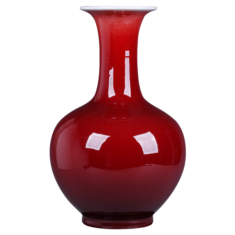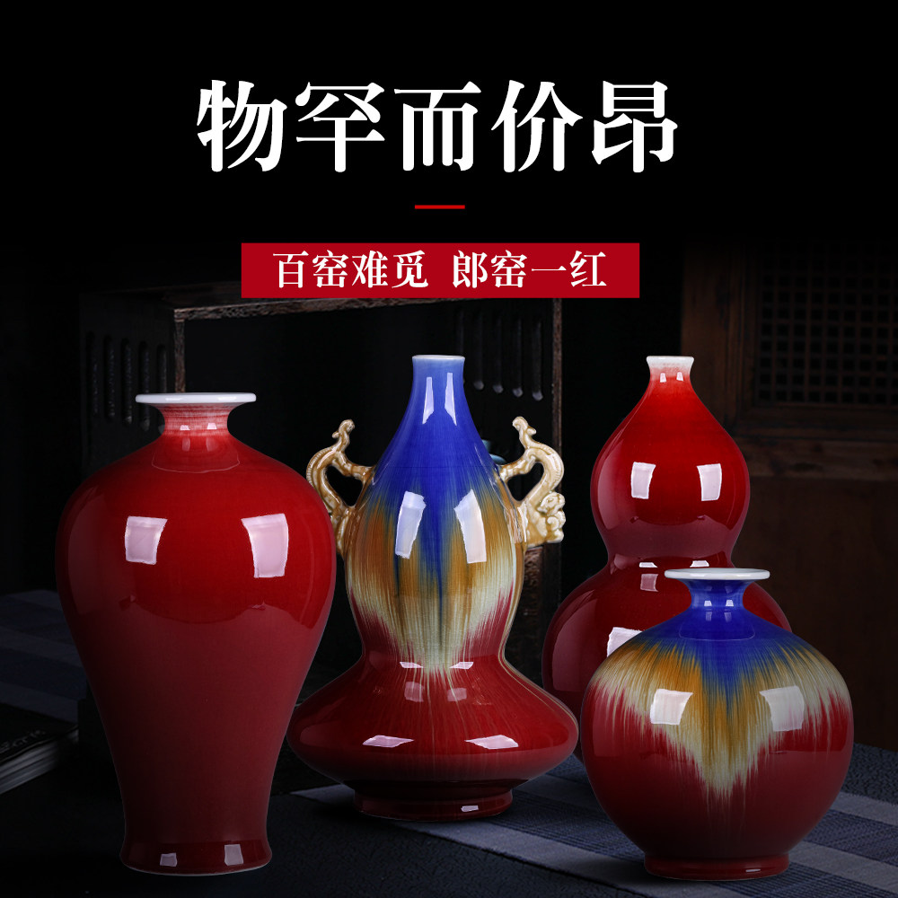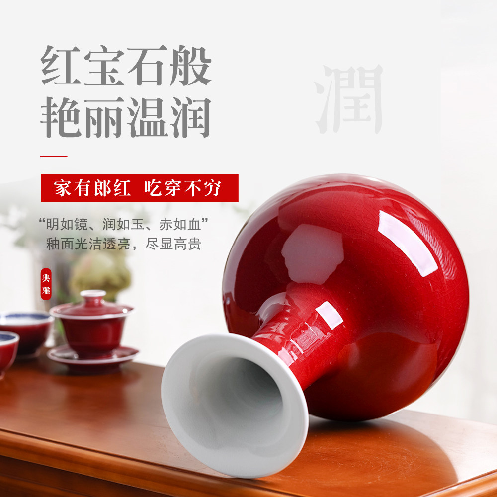 景德镇郎红釉陶瓷花瓶插花大号中式家居客厅电视柜装饰品摆件瓷瓶