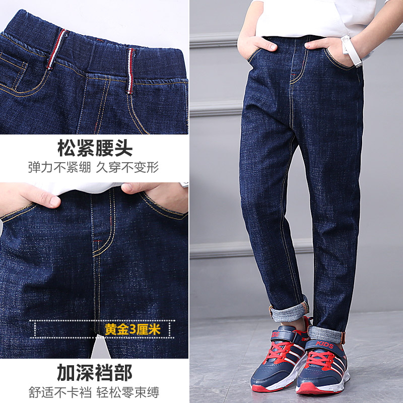 儿童裤子时尚简约男童牛仔裤弹力2025加绒新款中大童男孩长裤冬款
