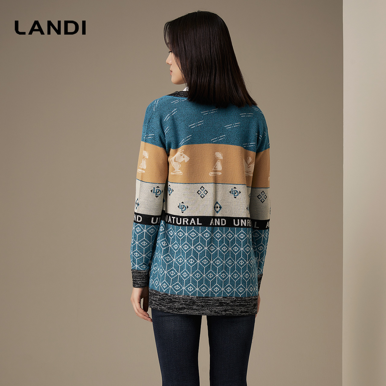 LANDI象棋提花绵羊毛针织开衫