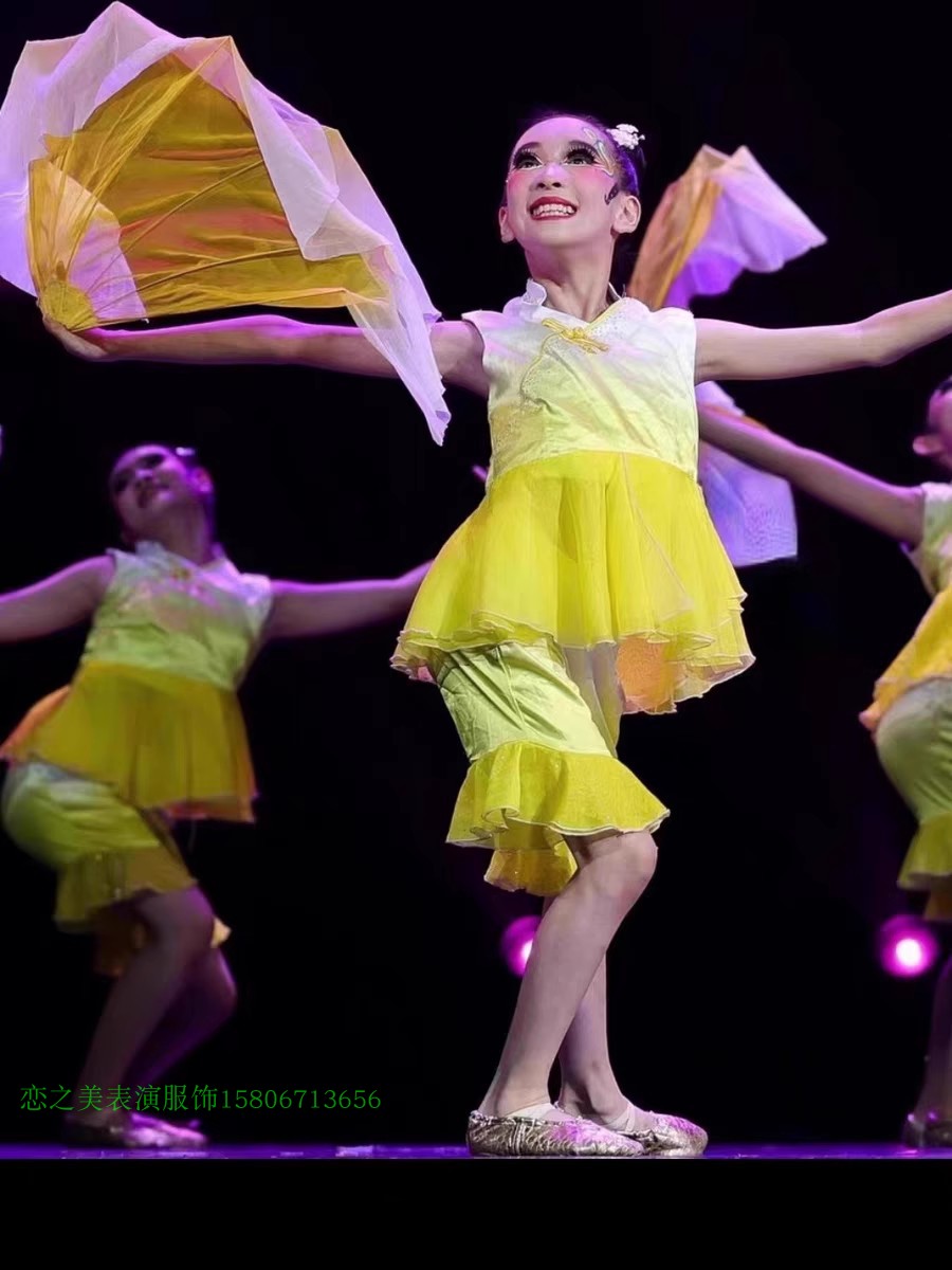 第十二届小荷风采俺是黄河水演出服可变装舞蹈表演服鱼骨软扇道具