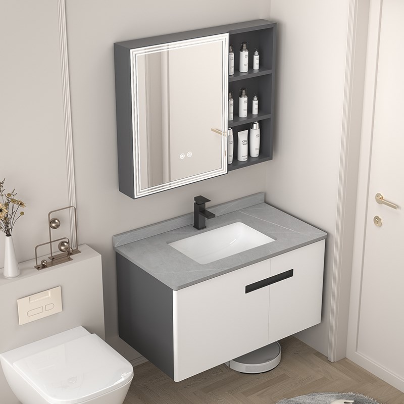 现代卫浴太空铝浴室柜洗手盆柜组B合简约时尚岩板洗脸盆智能镜柜