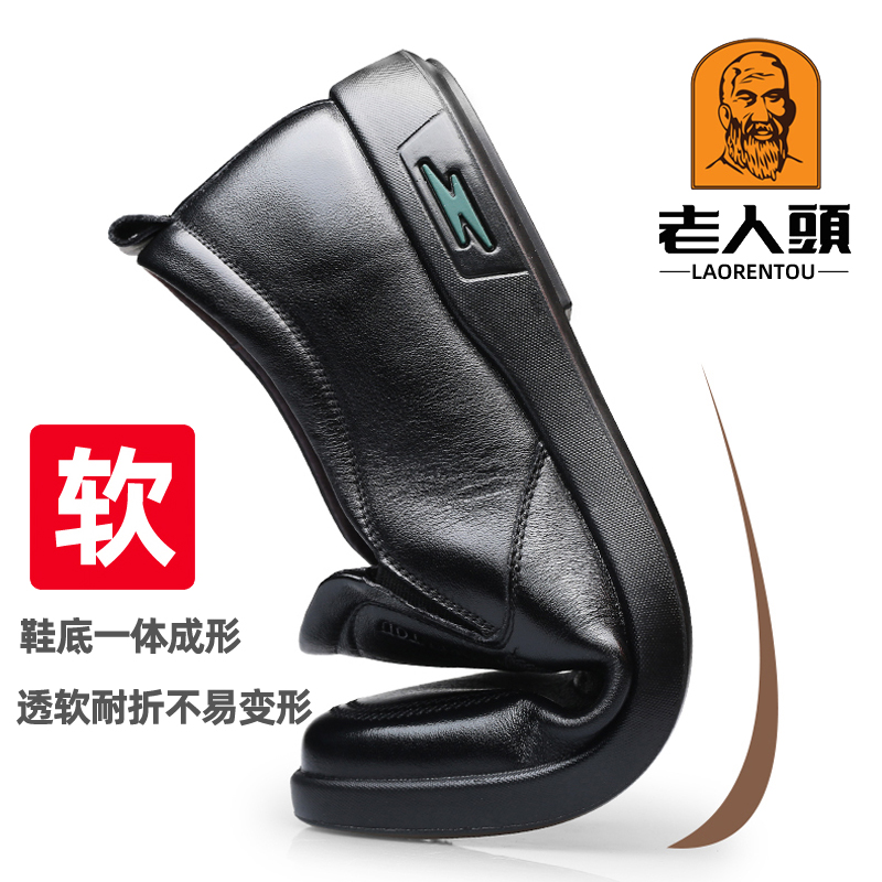老人头皮鞋男秋冬新款商务休闲皮鞋男士真皮透气男鞋软底爸爸鞋子