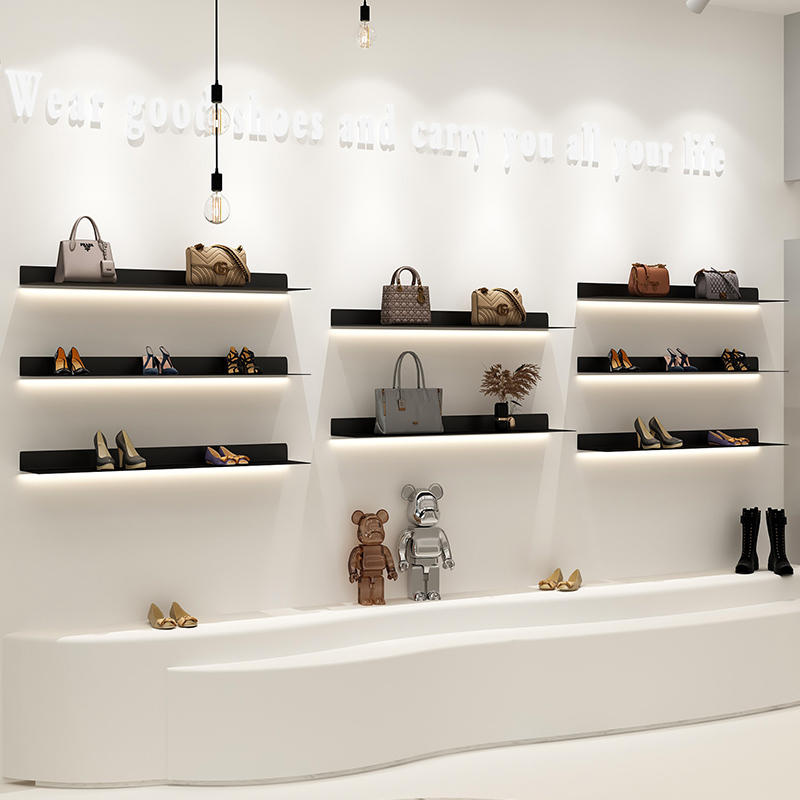 一字板发光墙上展示架带灯隔板客厅装饰层板壁R挂书架置物架简约
