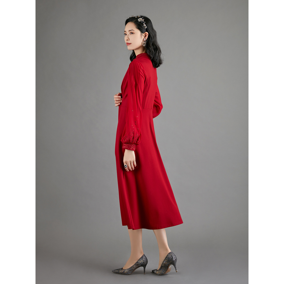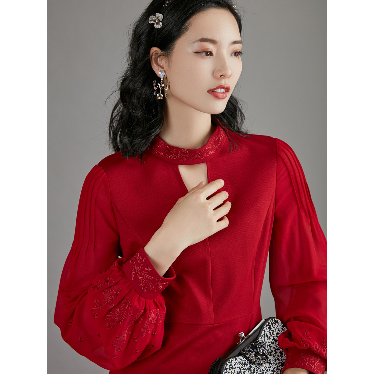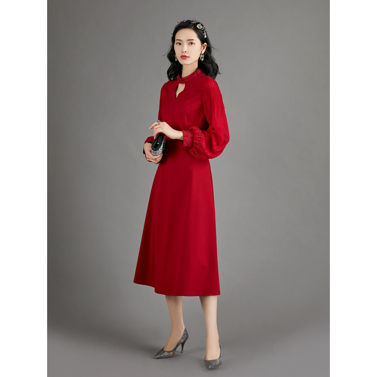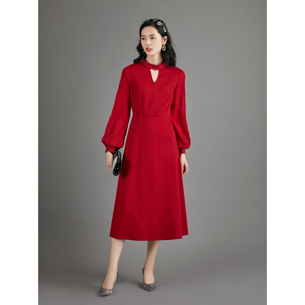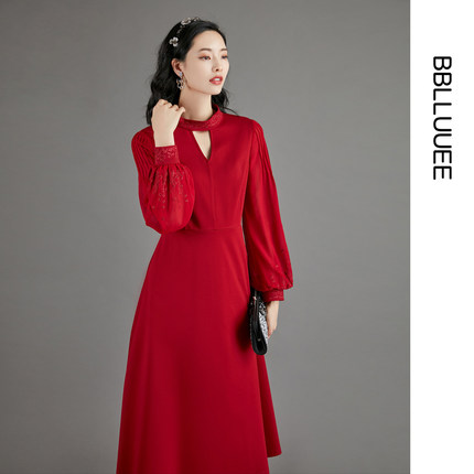 【商场同款】BBLLUUEE/粉蓝衣橱2025秋优雅东方感针织礼服连衣裙