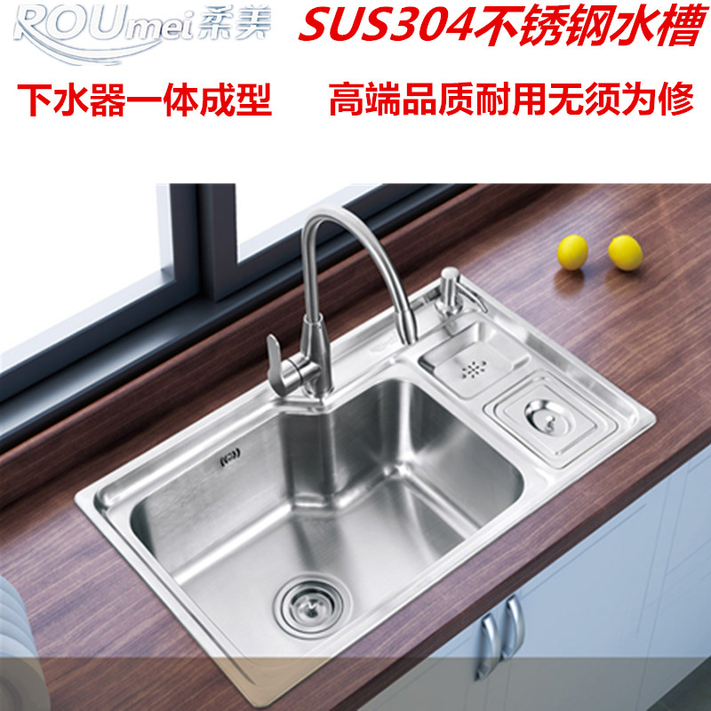 柔美304不锈钢厨房单槽单盆水槽大洗碗洗菜盆洗手盆手工一体成型