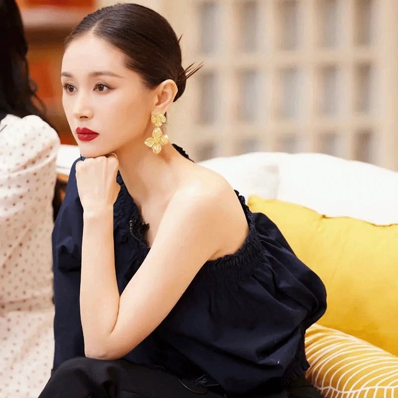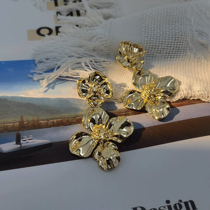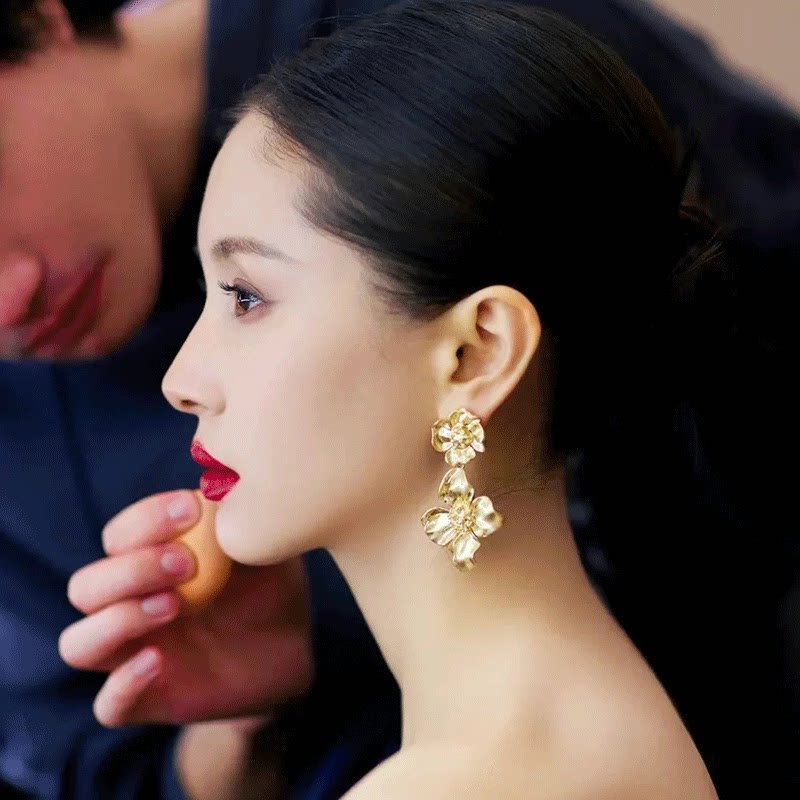 王子文同款耳环2026新款爆款金色夸张大耳坠花朵耳钉耳饰女高级感