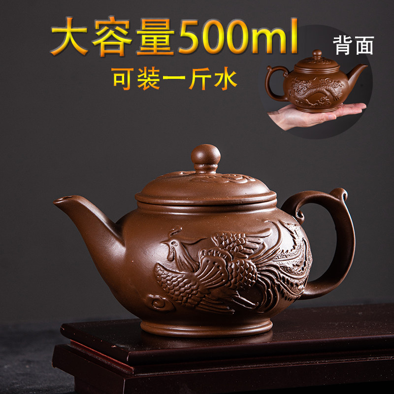 传统老紫砂壶 茶壶家用大容量泡茶壶 球孔陶瓷大号龙凤手工养生壶