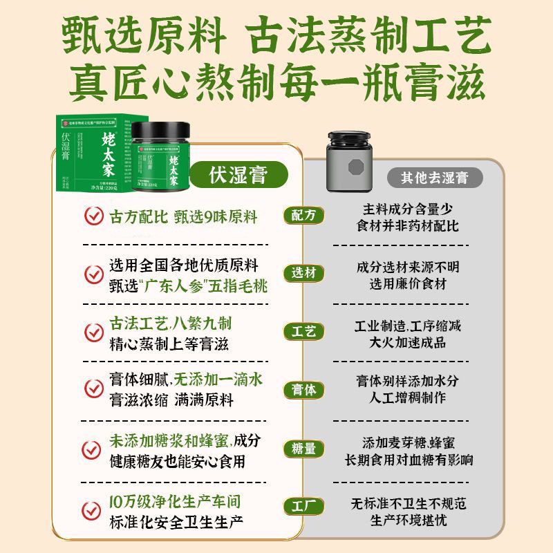 膏滋伏湿膏220g五指毛桃赤小豆古法蒸制300克湿清膏茯苓