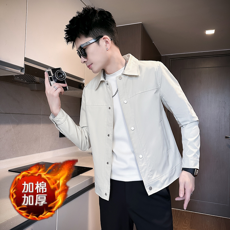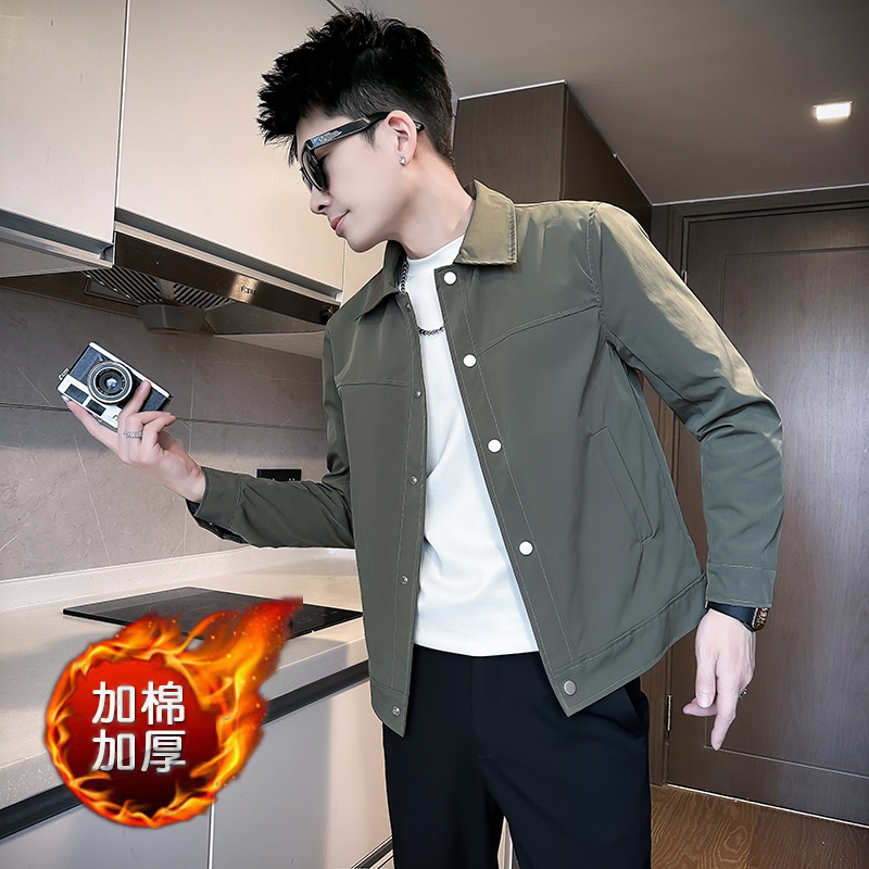 S号XS155小码男装冬季保暖加厚加棉外套修身短款上衣纯色简约夹克