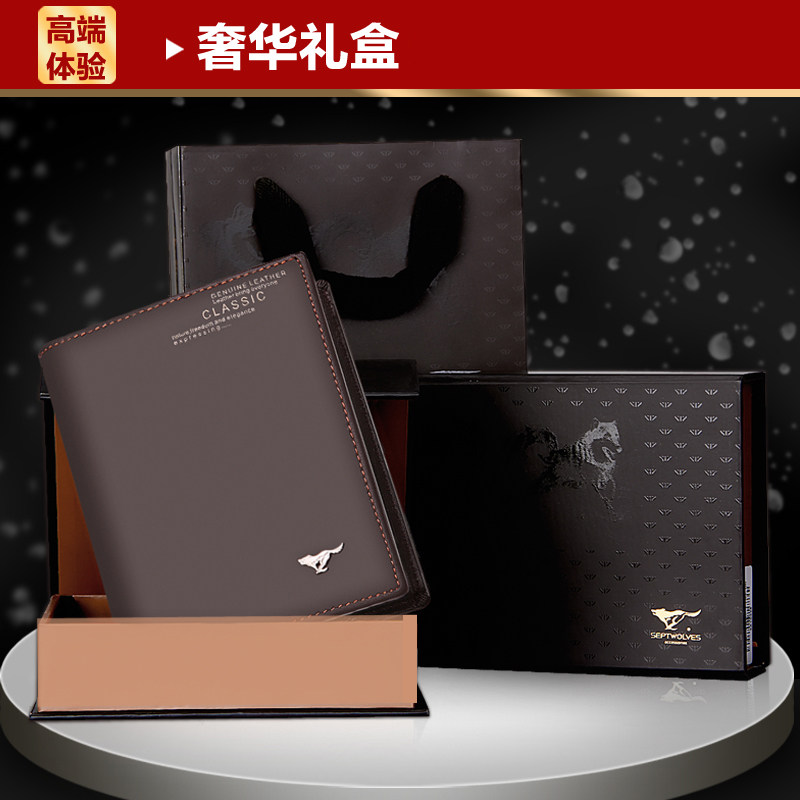 七匹狼钱包 男真皮正品头层牛皮夹韩版短款男士钱夹 竖款钱包潮流