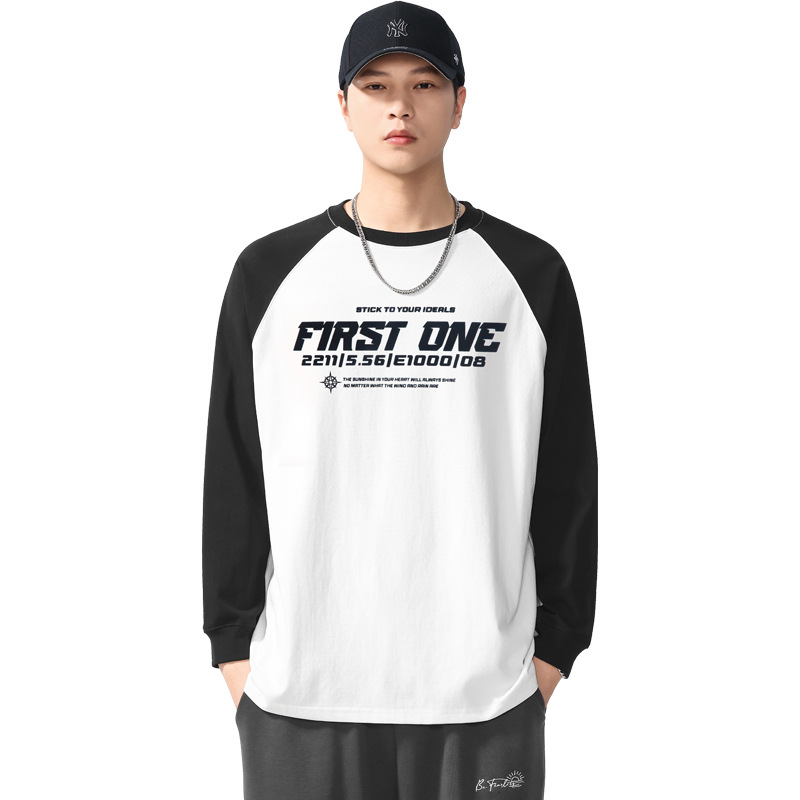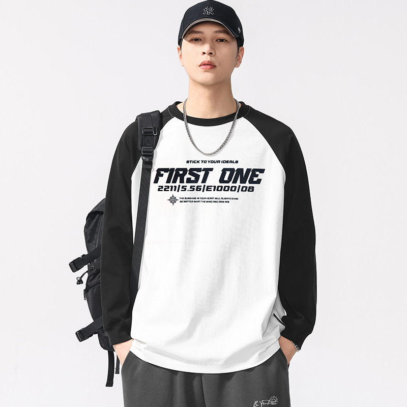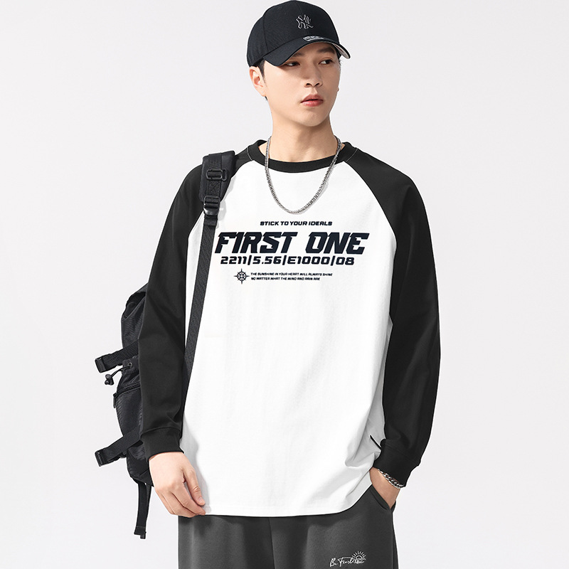 大码男士长袖t恤宽松青年卫衣拼色时尚秋衣插肩简约加肥加大上衣