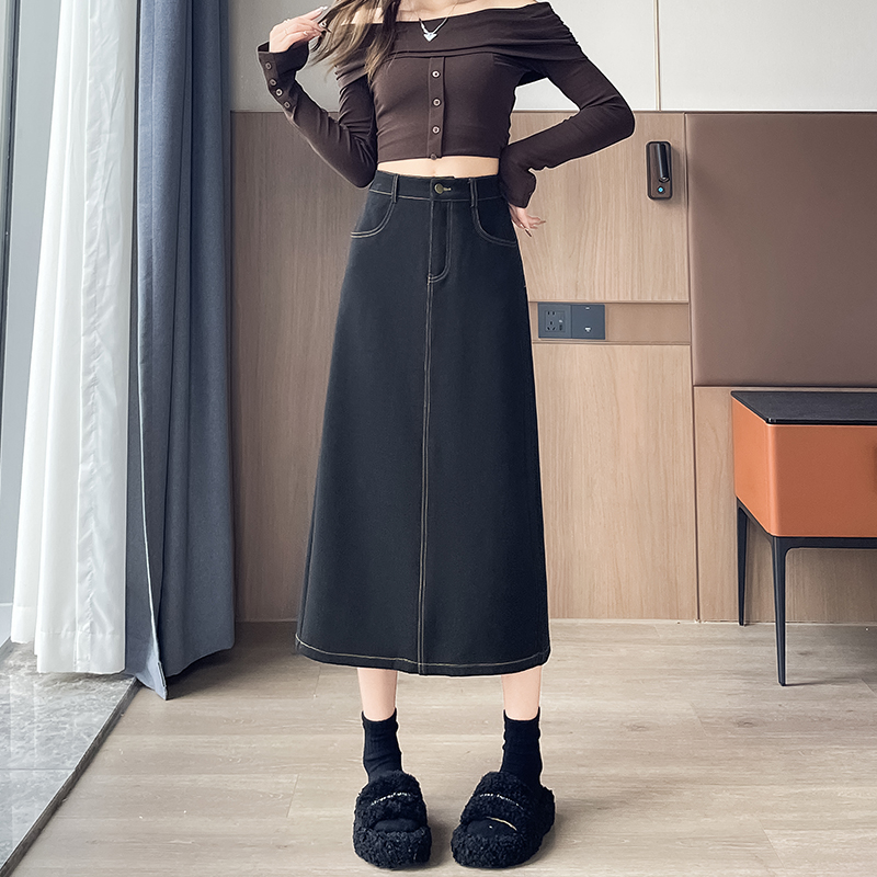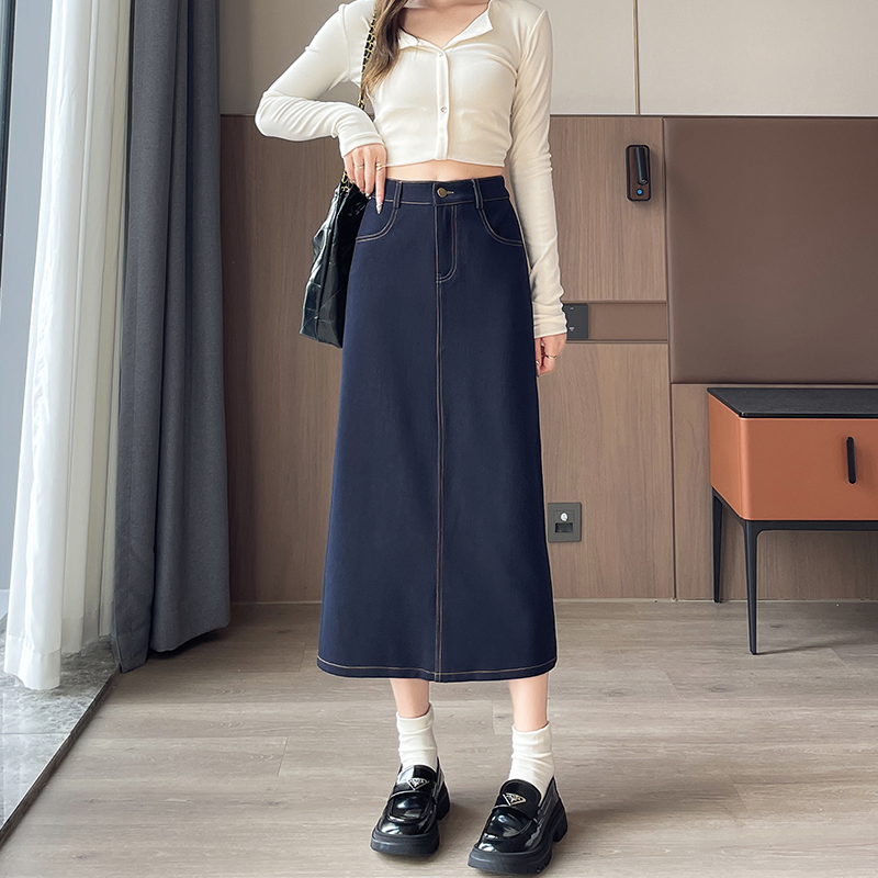 复古大码开叉牛仔半身裙女春秋冬高腰显瘦a字包臀裙长裙一步裙子