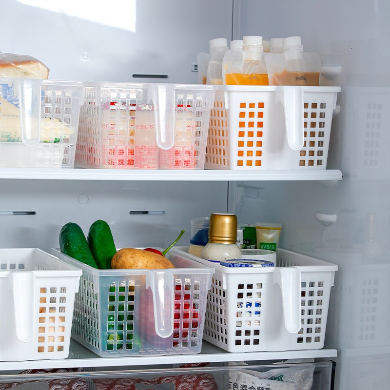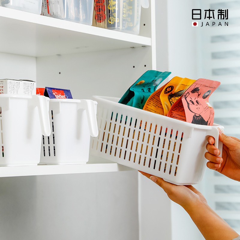日本进口收纳筐带手柄冰箱收纳篮家用橱柜厨房塑料杂物整理储物筐