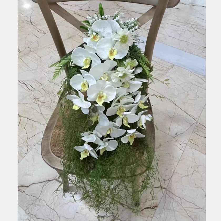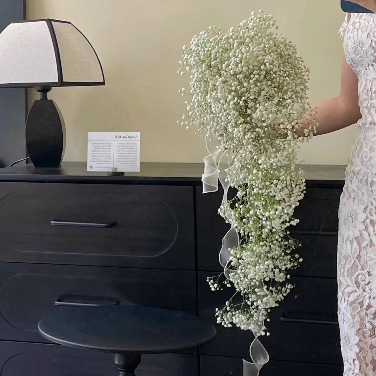 瀑布手捧花新娘仿真花婚纱照影楼拍摄道具文竹蝴蝶兰森系水滴手捧