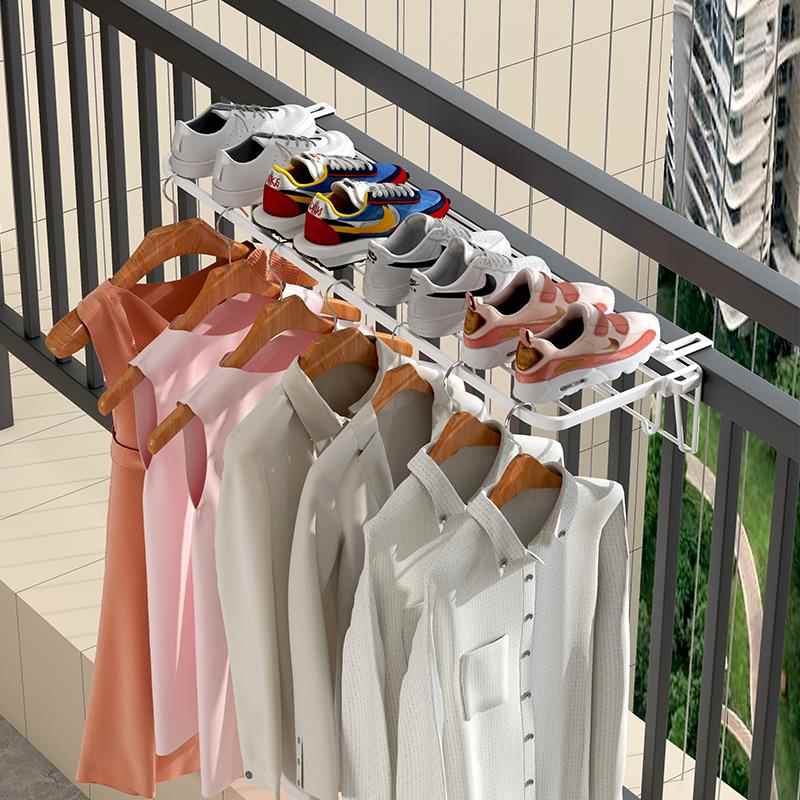 阳台晾衣神器阳台晾衣架子置物架防盗网窗户护栏杆室外晒衣鞋架子