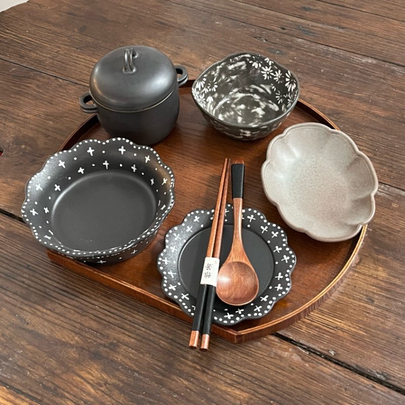 漫生活老板娘 黑瓷逸韵 一人食餐具搭配碗碟套装精致早餐男士会所