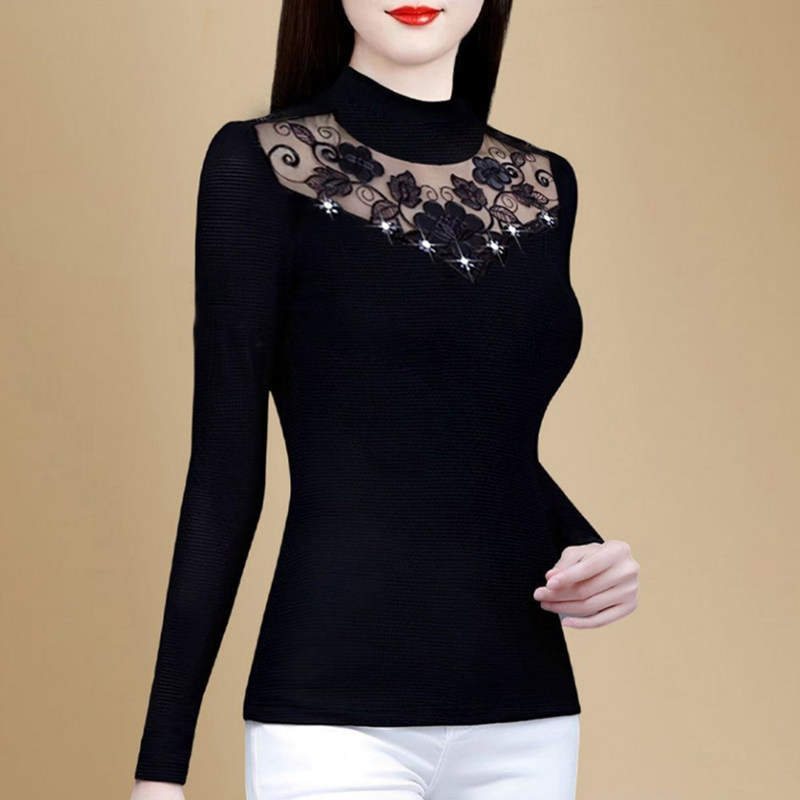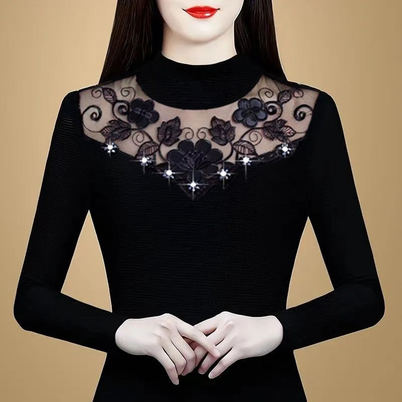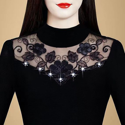 中老年蕾丝内搭自发热保暖打底衫
