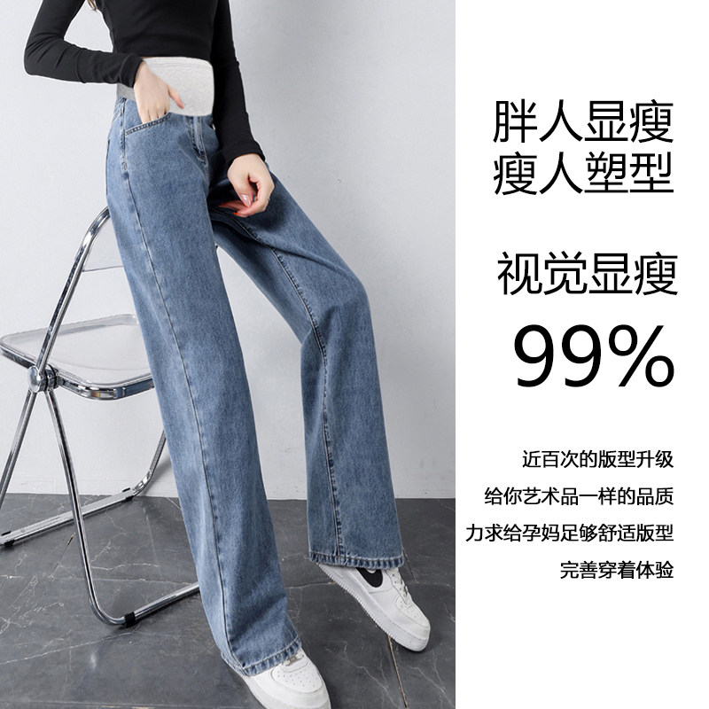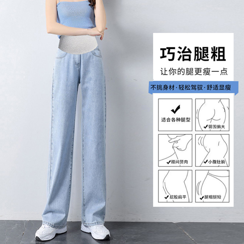 孕妇裤子夏季薄款大码冰丝牛仔裤夏款外穿打底直筒阔腿裤夏天夏装