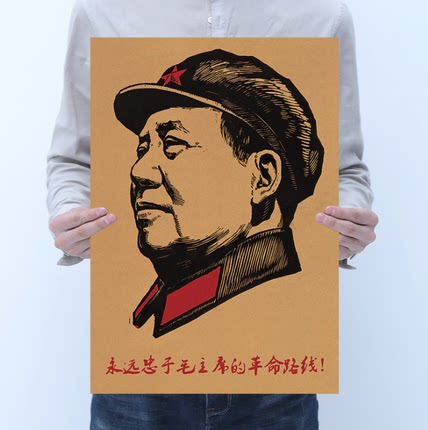 毛主席素描款 伟人海报 复古牛皮纸海报 宿舍壁纸贴画装饰画